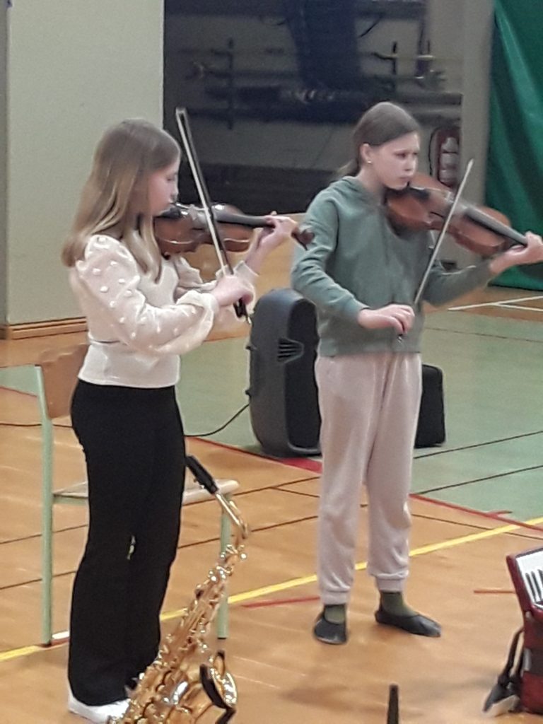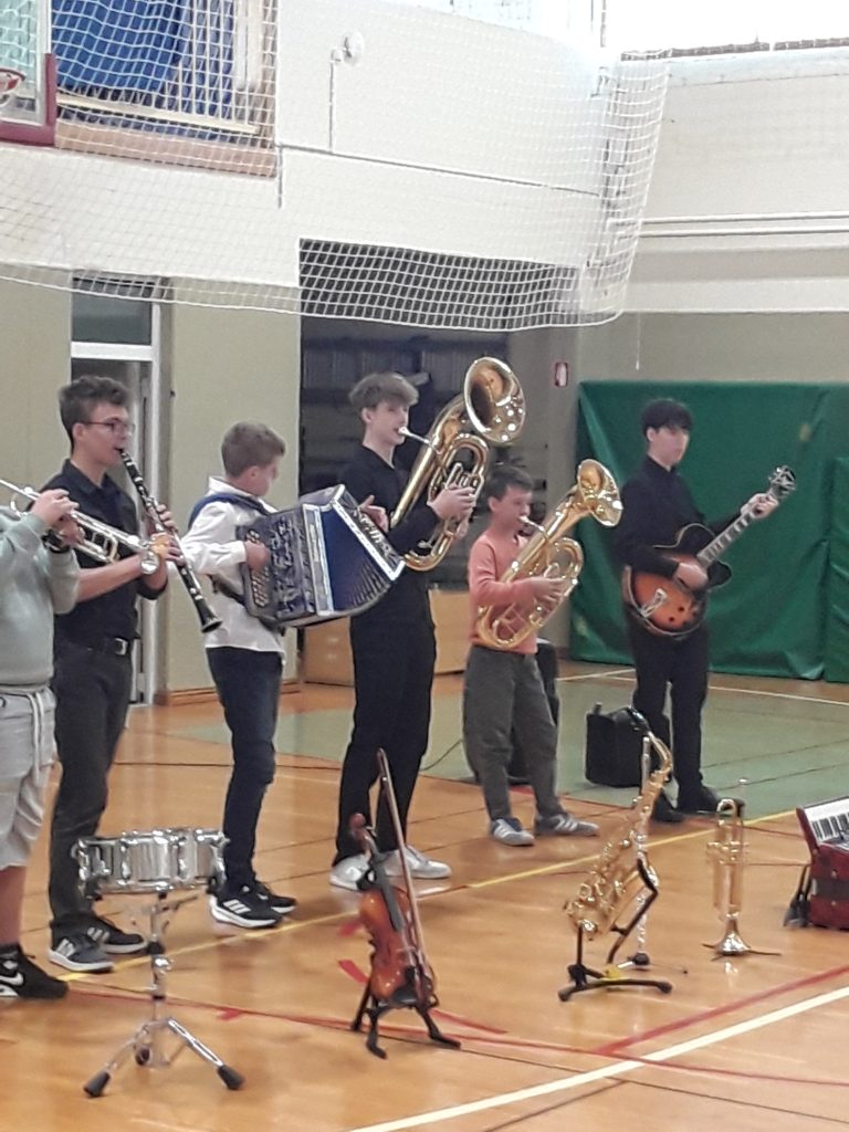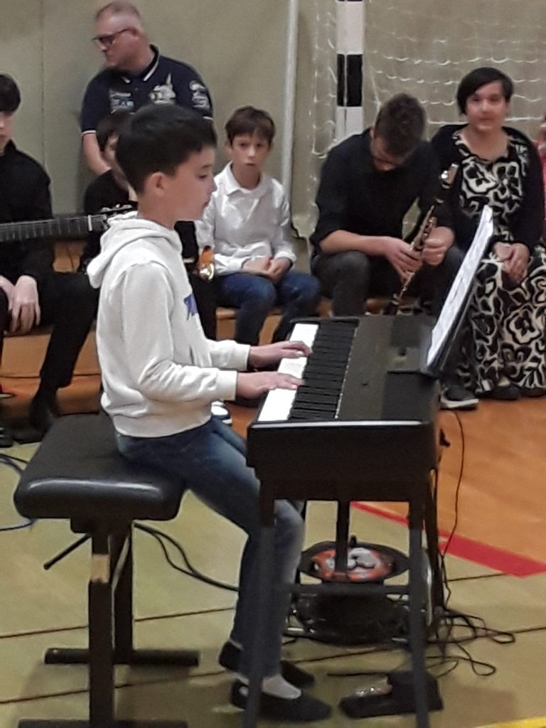 Danes smo imeli v naši šoli prav poseben dan – obiskali so nas učitelji in učenci Glasbene šole Ormož, ki so nam pričarali pravi mali koncertni spektakel. V telovadnici ni bilo ne športa ne žoge, ampak same glasbene zvezde v nastajanju. Čeprav je koga morda zaneslo, da bo slišal le »Mi se ‘mamo radi«, so nas naši glasbeni gostje hitro presenetili z raznovrstnimi instrumenti in virtuoznimi nastopi.