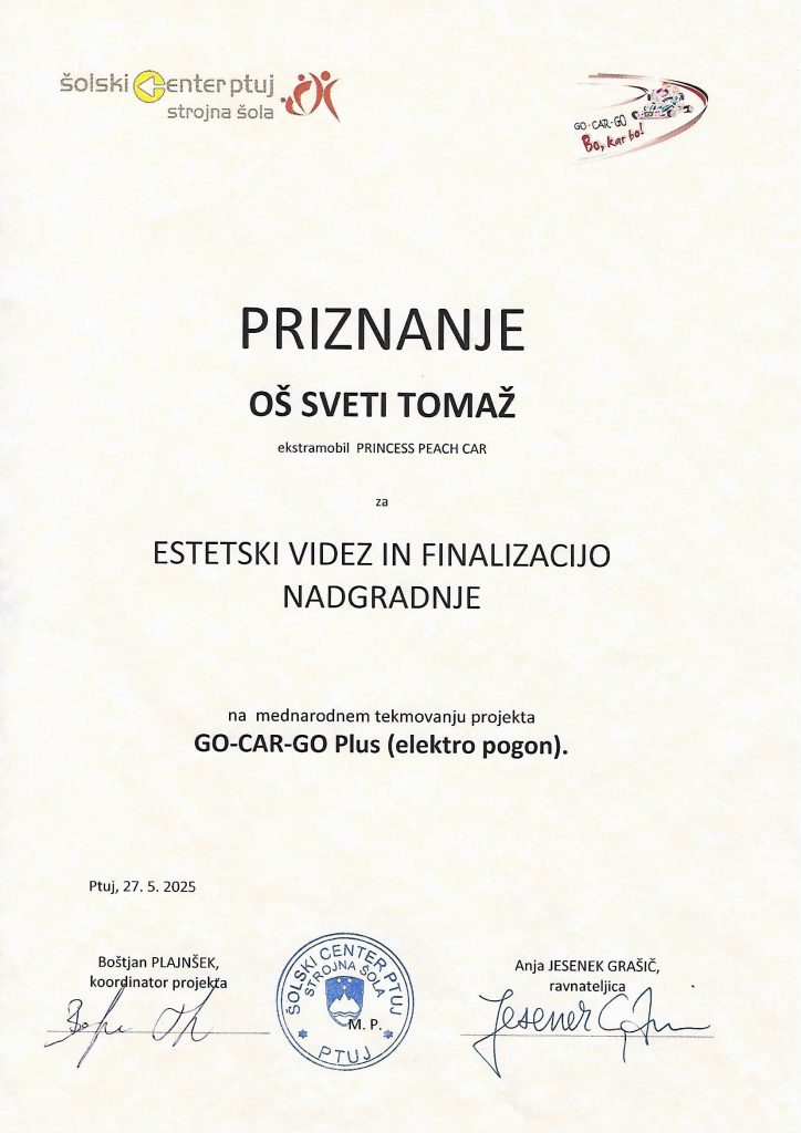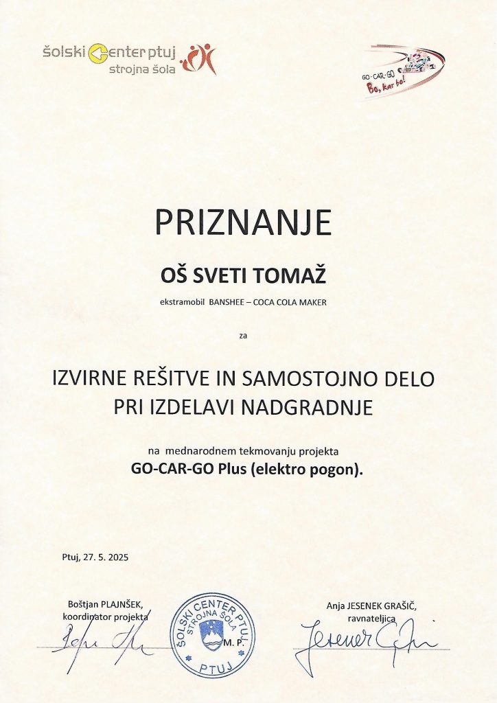 Tudi letos so se učenci 8. a razreda odločili, da bodo sodelovali v projektu GoCargo, kjer izdelujejo nadgradnjo avtomobila na električni pogon. Fantje so se določili, da bodo izdelali avtomobil z imenom Bansche -Coca Cola maker.