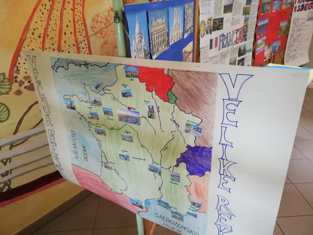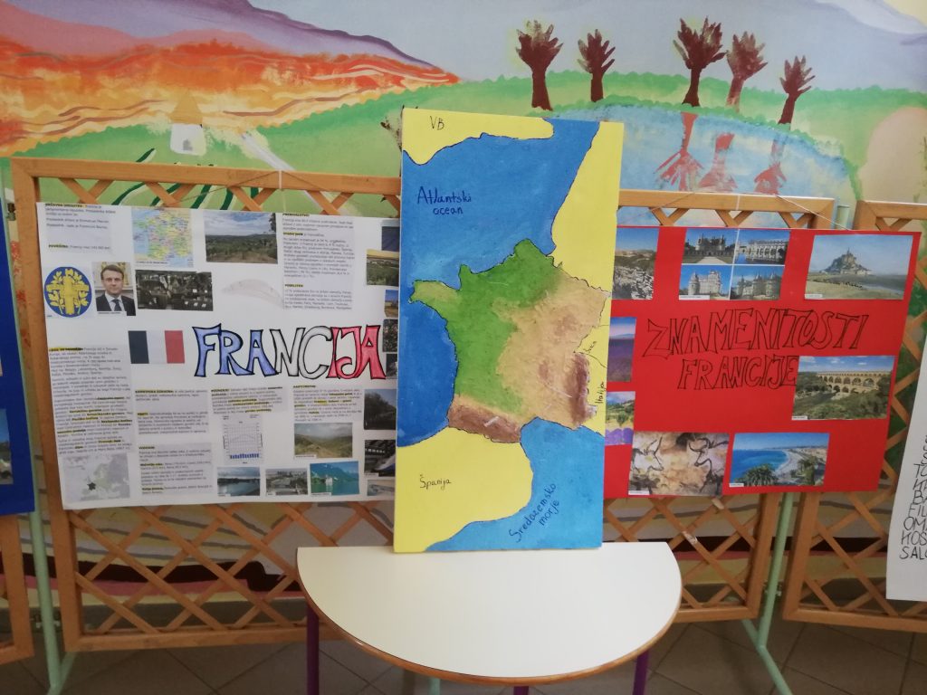 V četrtek, 8. maja 2025, bi morale v Ormožu pred grajsko pristavo potekati dejavnosti ob Dnevu Evrope, a je bila prireditev zaradi napovedi slabega in deževnega vremena odpovedana. Osrednja nit prireditve je bila spoznavanje držav EU. Z našimi učenci smo izbrali Francijo. Ker prireditve v Ormožu ni bilo, smo se odločili, da delček pripravljenega gradiva postavimo na ogled v avli naše šole. Pripravili smo osebno izkaznico države, predstavili glavno mesto, znamenitosti države, izdelali reliefni zemljevid Francije, zemljevid večjih rek in večjih mest ter sosednjih držav. Iskali smo francizme v slovenščini. Na karton iz lepenke smo narisali Mono Liso in Eifflov stolp. Predstavili smo nekaj znanih osebnosti. Učenci so se skupaj z razrednikom Markom res potrudili. Učiteljica Aleksandra nam je pomagala pri pripravi glasbene točke. Eva Tanaja in Teja bi zapeli pesem Mon Amour, ki je bila lanska predstavnica Francije za pesem Evrovizije.