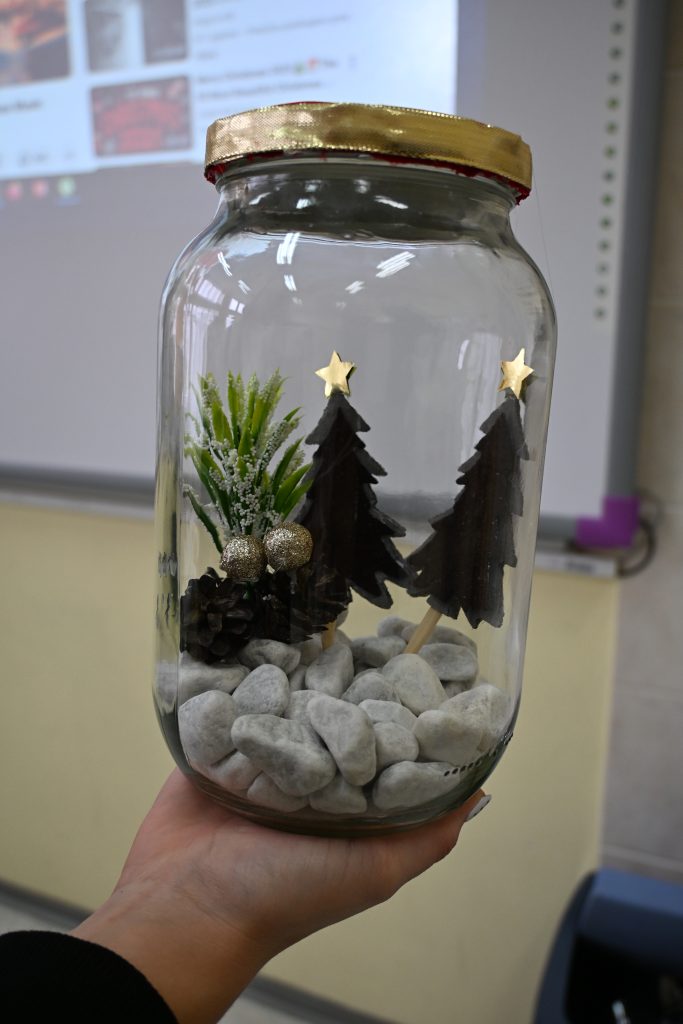 Devetošolci smo izdelovali zvezde iz origami papirja, okraske za smrečico, pripravili smo čokoladni napitek s penicami in čudovito stekleno dekoracijo za na mizo. Bili smo aktivnih cel dan, pri tem pa smo morali biti zbrani in natančni. Veseli smo, da so nam vsi načrti za tržnico uspeli. Upamo, da se vidimo v čim večjem številu!