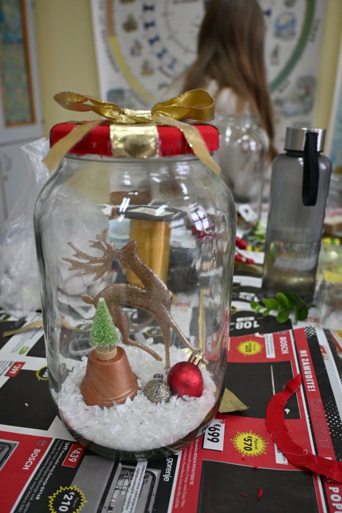 Ta dan mi je bil zelo všeč. Izdelali smo tri prelepe izdelke: namizni okrasek, kozarec s svečko in model škrata.