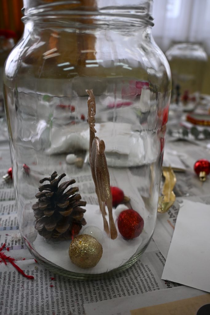 Izdelali smo kozarce, snežinke, srčke in pisala. Ustvarjali smo z različnimi materiali in se imeli fajn.