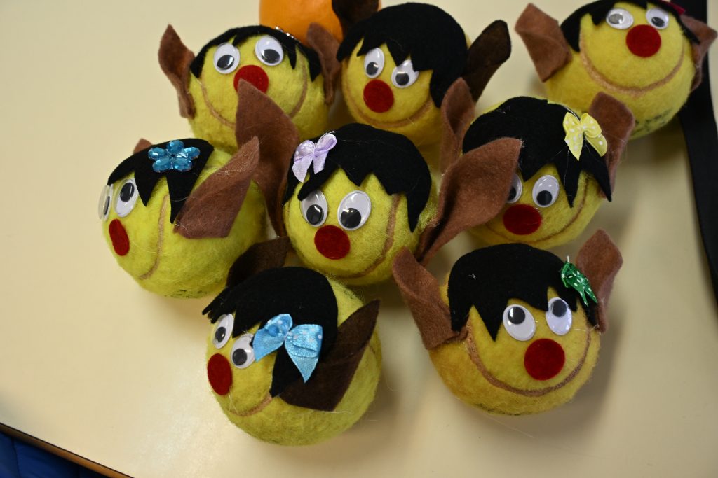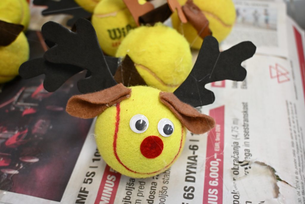 Izdelovali smo okraske za smreko iz tenis žogic. Imeli smo kar veliko dela, saj smo zarisovali, rezali in lepili. Pri delu smo morali biti potrpežljivi, previdni in natančni. Razdelili smo se v tri skupine in začeli z delom. Pri izdelovanju smo tudi uživali ob poslušanju božičnih pesmi.