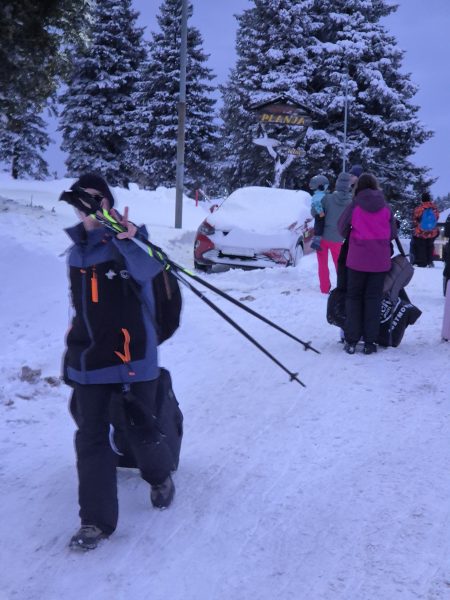 Po kosilu smo se odpravili na smučišče. Pričakalo nas je mrzlo vreme in dva učitelja smučanja, Boris in Tomaž, ki bosta poskrbela, da bo smučanje za naše začetnike zabavno, poučno in predvsem varno. Popoldne smo se nastanili v sobe in se po večerji družili v skupnem prostoru.
