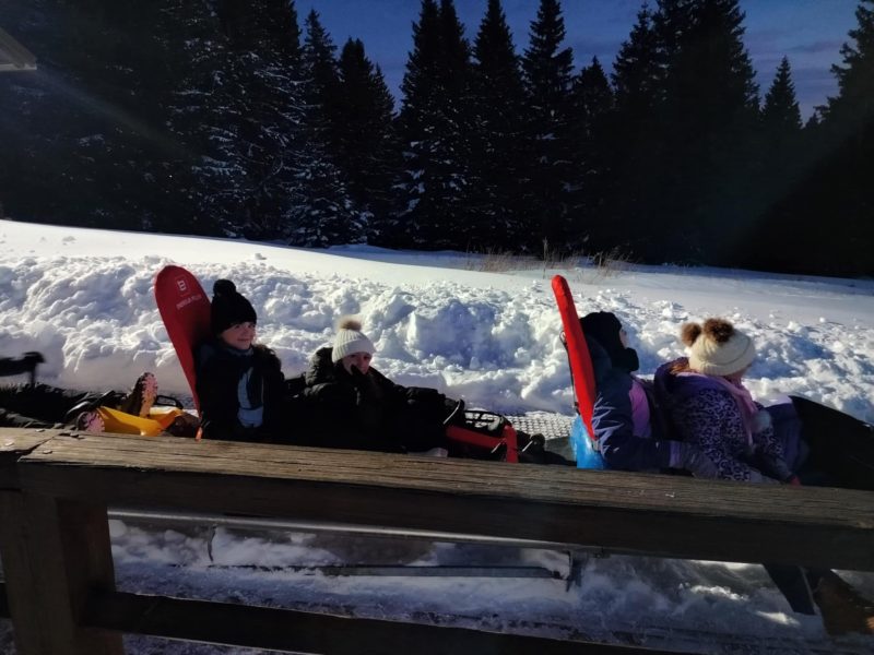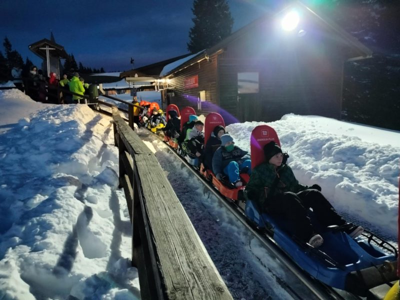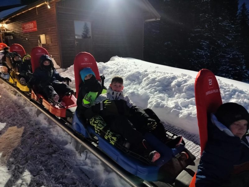 Danes je bil zelo aktiven dan. Po obilnem zajtrku, smo se odpravili na smuči. Na sončnih belih strminah smo vadili smučarsko tehniko, se preizkusili na vlečnici, odkrivali nove proge in svoje zmožnosti. Zvečer smo se spustili s sanmi po Zlodejevem, za konec dneva pa čofotali v hotelskem bazenu.
