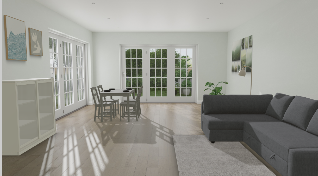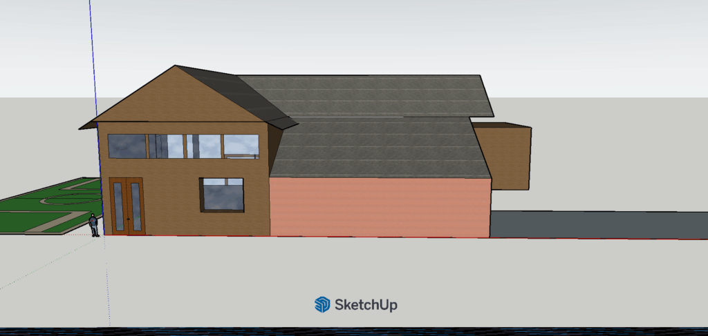 Načrtovanje hiše smo začeli z risanjem hiše s programom Google Sketchup. Bilo je zelo zanimivo in tudi smešno. Ko smo končali z zunanjostjo hiše, smo začeli z notranjimi prostori. To smo delali na spletni strani Ikea. Vse zaključene slike smo naložili vspletno učilnico. Dan smo končali ob 11.55.