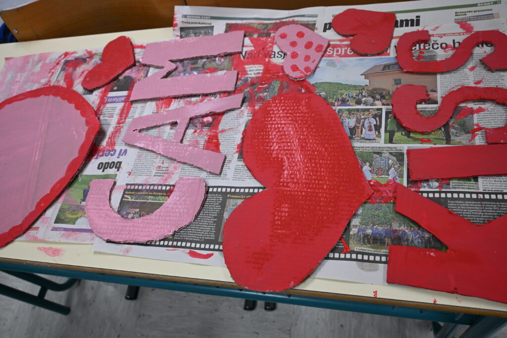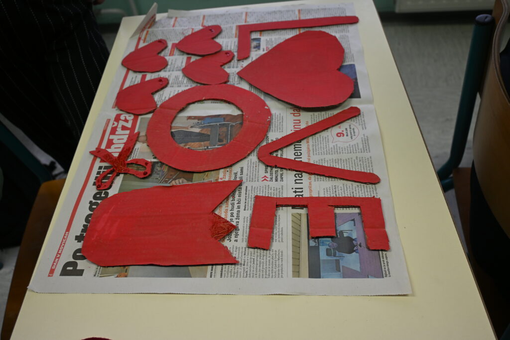 Na naši šoli je letos pust dobil prav posebno, srčno obarvano podobo! Učenci od 6. do 9. razreda smo se pri likovnem ustvarjanju lotili izdelave pustnih mask na temo valentinovega. Učilnice so se za nekaj dni spremenile v prave ustvarjalne delavnice, polne barv, bleščic, papirnatih src in dobre volje. Vsak učenec je masko oblikoval po svoji domišljiji – nastajale so maske zaljubljenih junakov, skrivnostnih src, nasmejanih obrazov in domiselnih simbolov prijateljstva. Uporabili smo različne materiale, od kartona in barv do perja, trakov in gumbov. Ob delu ni manjkalo smeha, sodelovanja in izmenjave idej, kar je ustvarjanje naredilo še bolj zabavno.