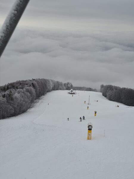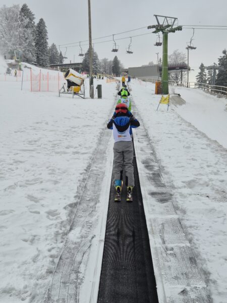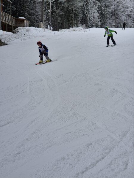 V ponedeljek, 2. 2. 2026, smo se z učenci 4.a udeležili akcije Šolar na smuči. Gre za vseslovenski projekt smučarskega ozaveščanja šolskih otrok, ki učencem osnovnih šol omogoča brezplačen sistematično voden smučarski dan na smučišču. Akciji smo se skupaj z OŠ Ivanjkovci pridružili na Mariborskem Pohorju. Ob prihodu smo od učiteljev tamkajšnje smučarske šole prejeli majice in uvodna navodila. Z gondolo smo se nato odpeljali do vrha, kjer smo se ogreli in pričeli s smučanjem. Začetniki so po uvodnem prilagajanju hitro usvojili prve smučarske korake, zato so se kmalu podali na smučišče. Naučili so se varno zaustaviti, večina od njih pa tudi preprostega vijuganja. Učenci smučarji so nadgradili svoje znanje in se nekateri prvič vozili s sedežnico.