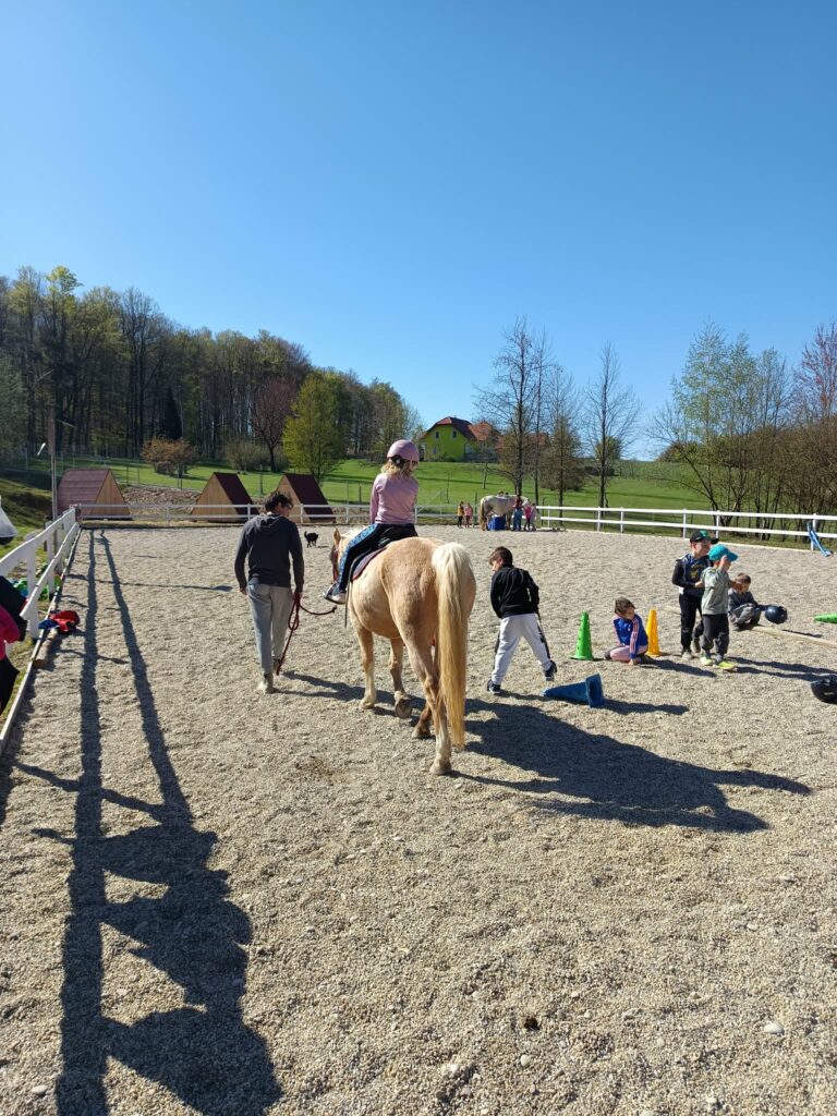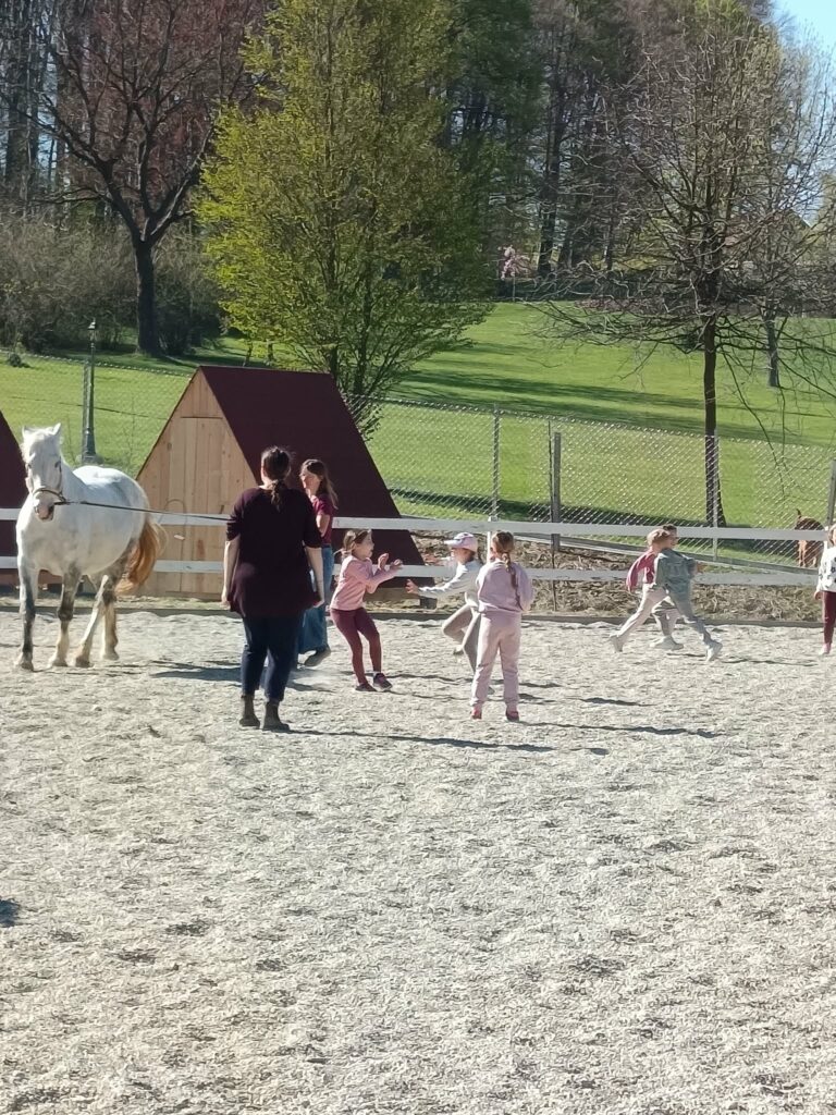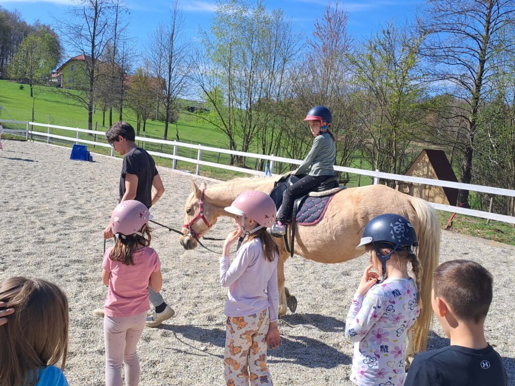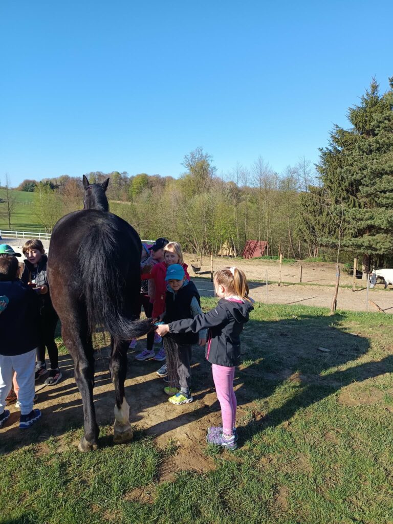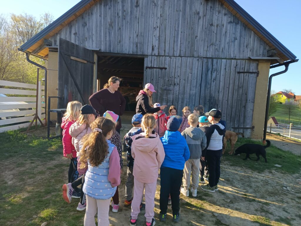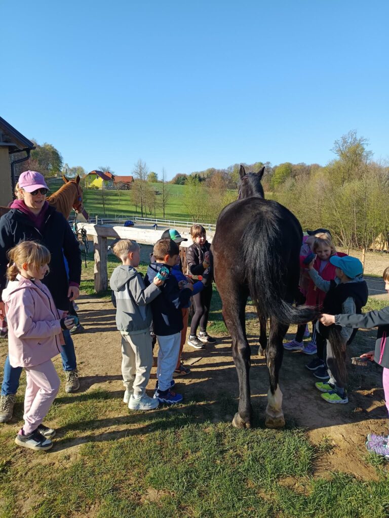 Obiskali smo Konjeniški in mladinski center Škatlica, ki deluje na posestvu Pri stari žagi na Seniku. Dan dejavnosti smo učenci 1. in 2. razreda preživeli aktivno in doživeto. Do centra smo se odpravili peš. Ob prihodu so nas pričakali prijazni zaposleni in dva prijazna psa, ki sta nas spremljala skozi ves dopoldan. Delavnice so potekale po skupinah. Konji, vajeni otrok, so potrpežljivo prenašali naše dotike. Dan je bil zanimiv, vesel, poučen in tudi nekoliko naporen.