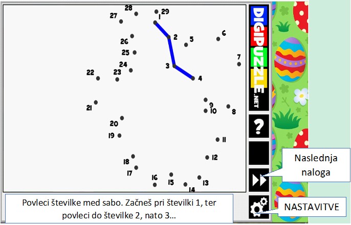 POVLECI ČRTO MED ŠTEVILKAMI– VAJA PRIMERNA ZA UTRJEVANJE Z MIŠKO. ZA VAJO KLIKNI TUKAJ