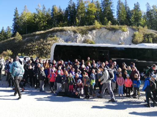V soboto, 4. oktobra, smo se mladi planinci kar z dvema avtobusoma odpeljali na planinski izlet na Veliko planino. Tukaj so pastirji zgradili več pastirskih naselij s preko sto planinskimi stanovi (kočami, bajtami) posebnih oblik, ki so zaščitni znak planote. Z avtobusom smo se odpeljali do prelaza Volovljek in parkirišča Rakova raven ter nato pot peš nadaljevali najprej proti Mali in nato še proti Veliki planini. Njen najvišji vrh je 1666 metrov visoko Gradišče, s katerega seže pogled na vse smeri. Na Veliki planini smo se spustili v jamo udornico Vetrnica. To je bila kraška jama, ki se ji je porušil strop. Ustavili smo se ob kapeli Marije Snežne, ki je bila postavljena po načrtih arhitekta Plečnika.