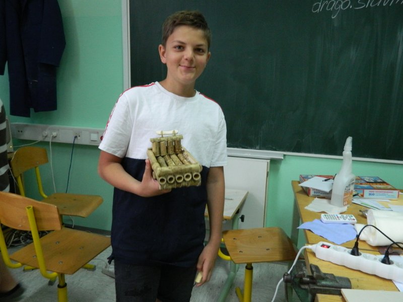 Danes smo izdelali splav. Bilo mi je všeč. Nisem bil preveč uspešen. Imel sem malo težav. Na koncu pa mi je uspelo.