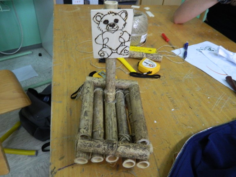 Tehniški dan se mi je zdel zanimiv, saj sem prvič delala splav iz bambusa. Imeli smo še kar težko delo, naredili smo različne splave, nekateri tudi z strehami.