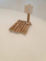 Danes sem izdelal splav. Z splavom sem zadovoljen. Najprej sem razžagali bambusovo palico na več delov. Nato sem palice povezal z vrvjo, naredil ogrado. Na jambor sem prilepil zastavo in zapisal svoje ime.