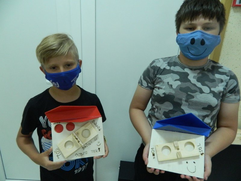 Na tehniškem dnevu sva se počutili v redu. Največ težav so nama povzročale plošče iz umetne mase. Izdelek nama je obema dobro uspel. Naučili sva se veliko novega.
