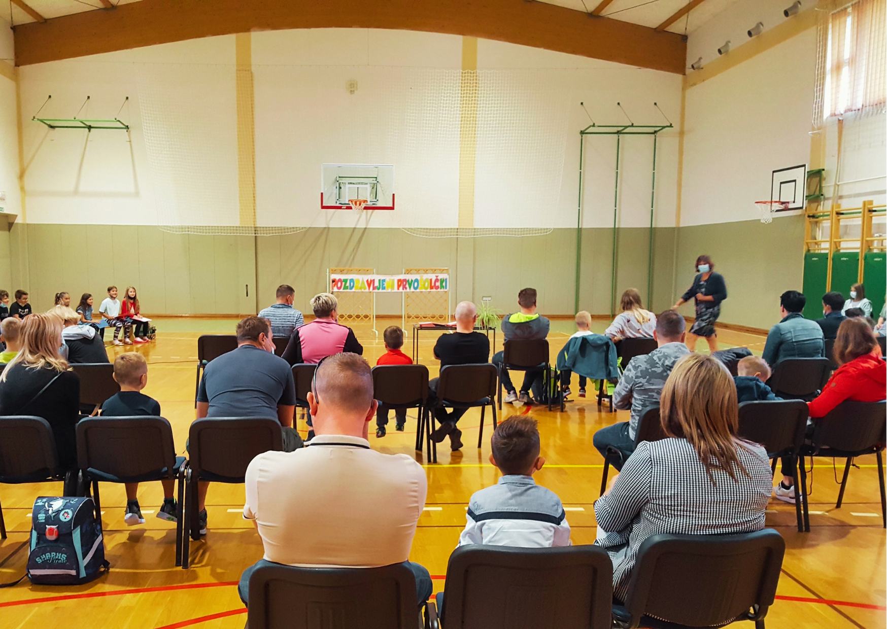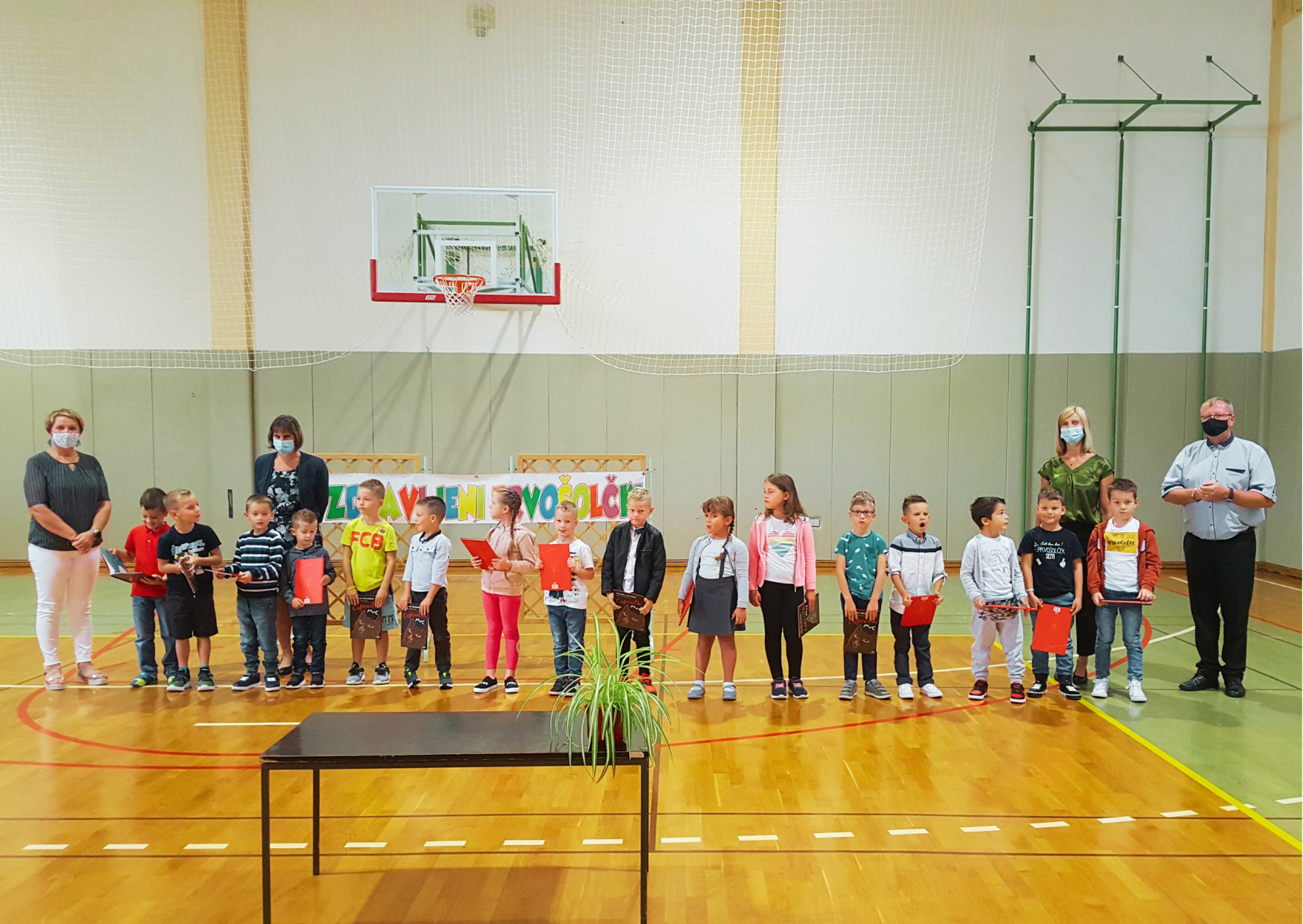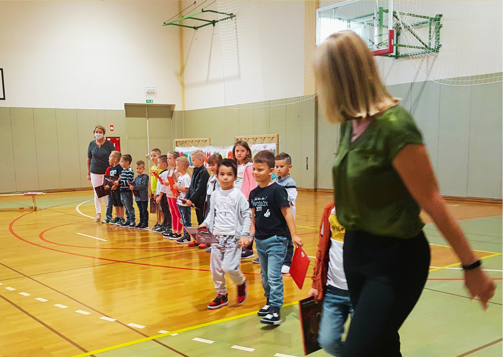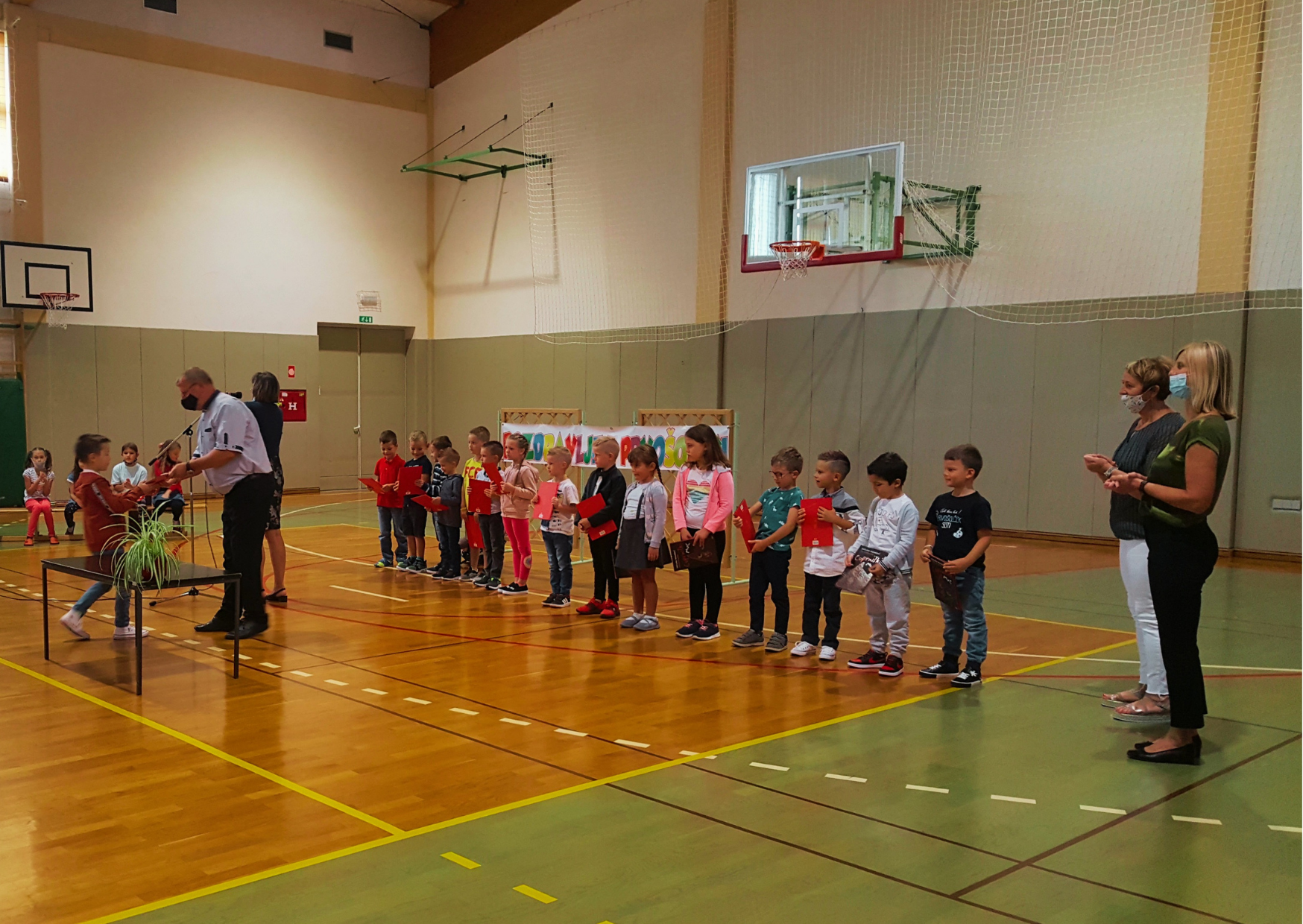 Za naše prvošolčke je bil prvi šolski dan, 1. 9. 2021, prav poseben. V šolo so prišli skupaj s starši. Zbrali so se v telovadnici, kjer jih je najprej pozdravila gospa ravnateljica Irma Murad, nato pa še gospod župan Mirko Cvetko. Program so pripravili učenci naše šole.