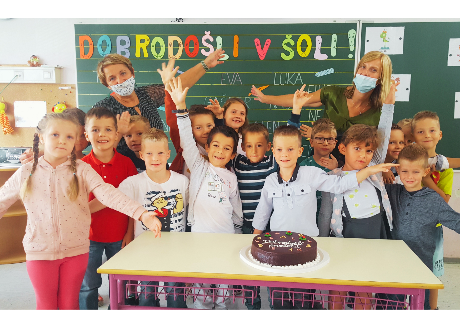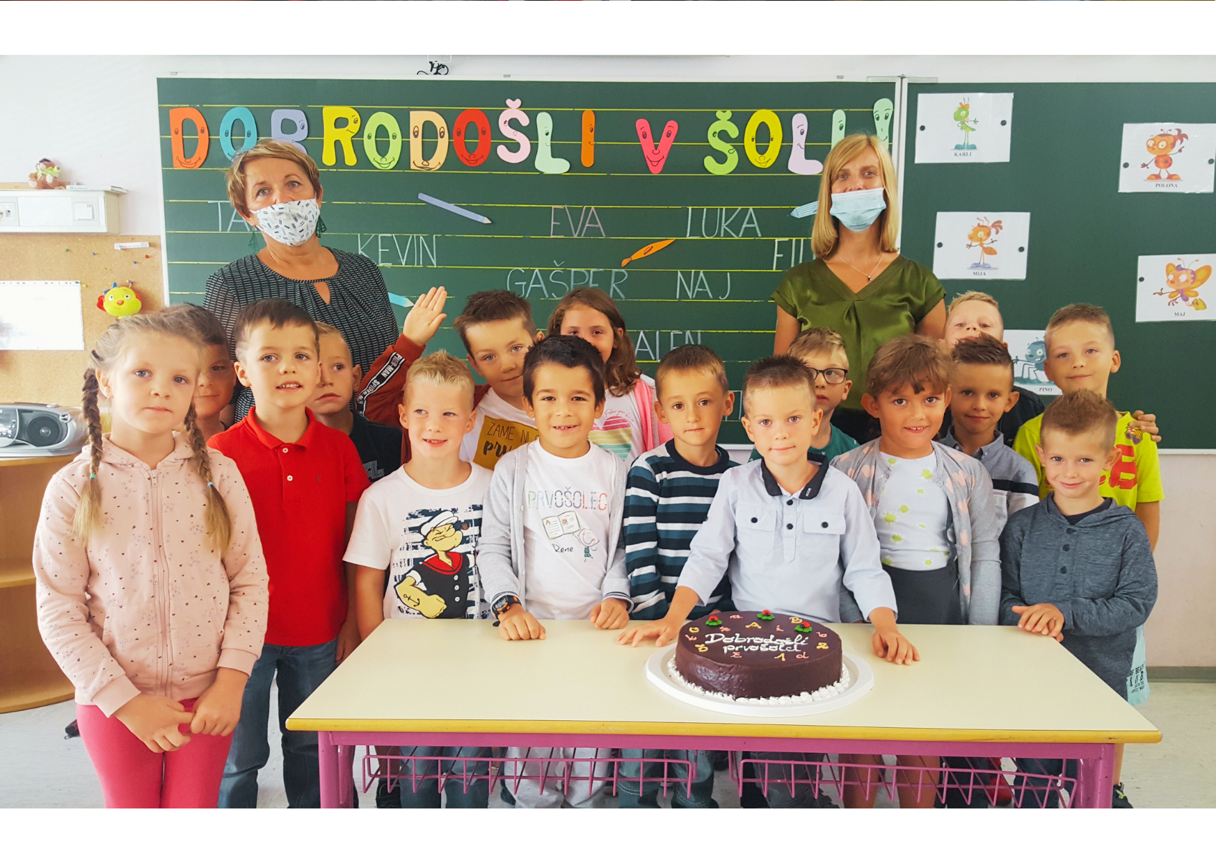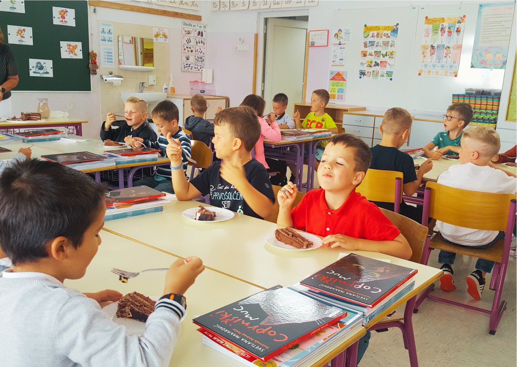 Polni pričakovanja so se srečali z učiteljicama, ki jih bosta poučevali in si nato ogledali učilnico. Seznanili so se z delom v prvem razredu in malce poklepetali s sošolci. Tudi okusna torta ni manjkala.