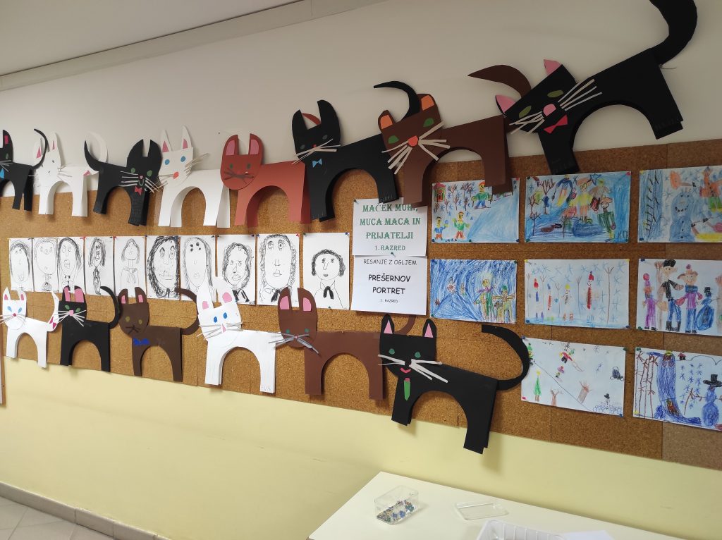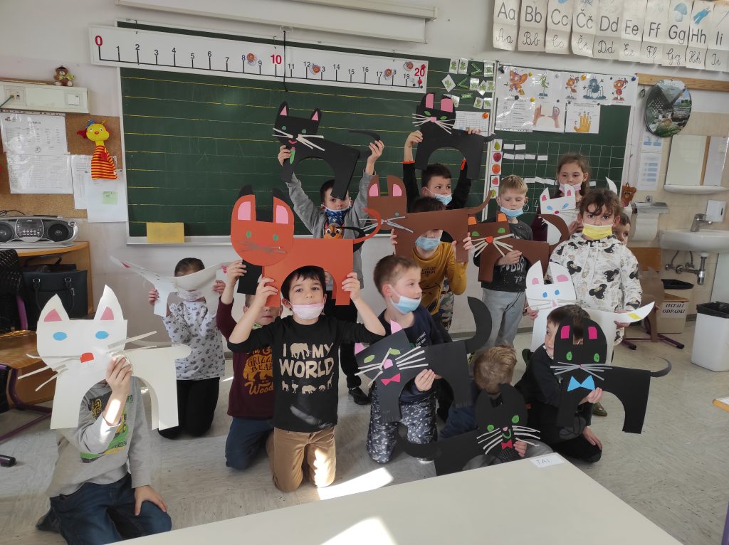 Prijetna zgodbica o mačjem mestu in pametnem mačku Muriju, ki je vse pomembne dogodke v mačjem mestu zapisoval v dnevnik, je učence 1.a navdušila za ustvarjanje. Izdelali so si mačka iz zgodbe in se predstavili. Lepi izdelki so okrasili razstavni pano pred razredom. Radi jih pogledamo.