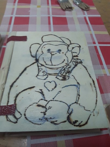 Danes sem se imela lepo na tehniškem  dnevu. Bilo je zabavno,  ko smo risali na les in žgali motiv.