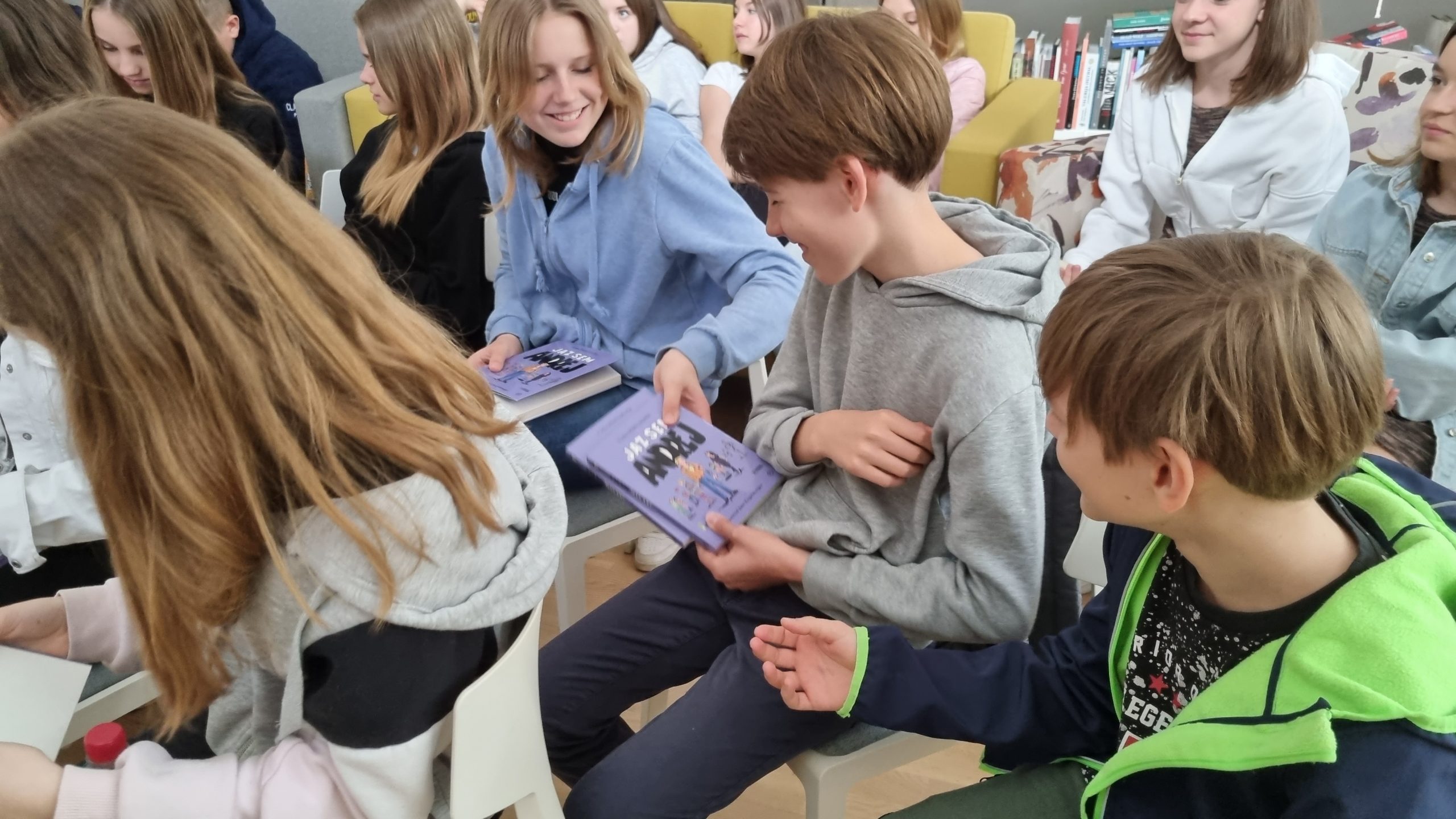V ponedeljek, 9. 5. 2022, so učenci 7. razreda v okviru projekta Rastem s knjigo obiskali knjižnico Franca Ksavra Meška v Ormožu. Ob prihodu v knjižnico so se seznanili s samim delovanjem knjižnice, spoznavali so knjižnični oddelke, brskali po knjižnih policah ter razvijali knjižnično informacijsko znanje. Ker sam projekt vzpodbuja bralno pismenost, je vsak učenec v dar prejel izvod izbrane knjige. Letošnje leto so učenci v dar in trajno last prejeli izvod knjige Vinka Möderndorferja, ki nosi naslov Jaz sem Andrej. Učenci so že ob samem prejemu prelistali knjigo, z učiteljem pa upava, da jih bodo zanimive ilustracije ter že prebrani odlomki spodbudil k branju.