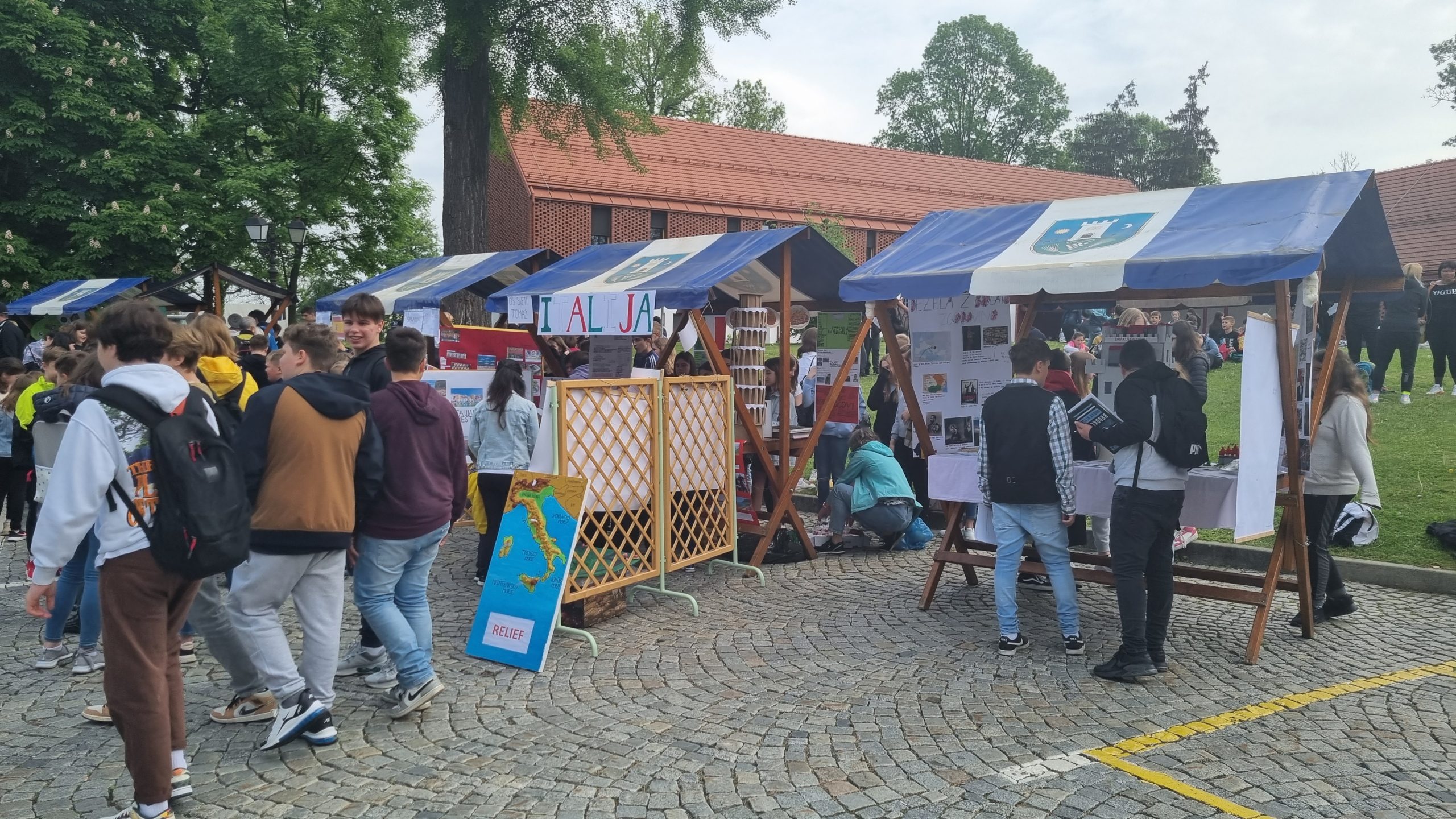 Ormoško grajsko pristavo so zapolnile stojnice, za katerimi so učenci iz različnih šol predstavili posamezne države Evropske unije.