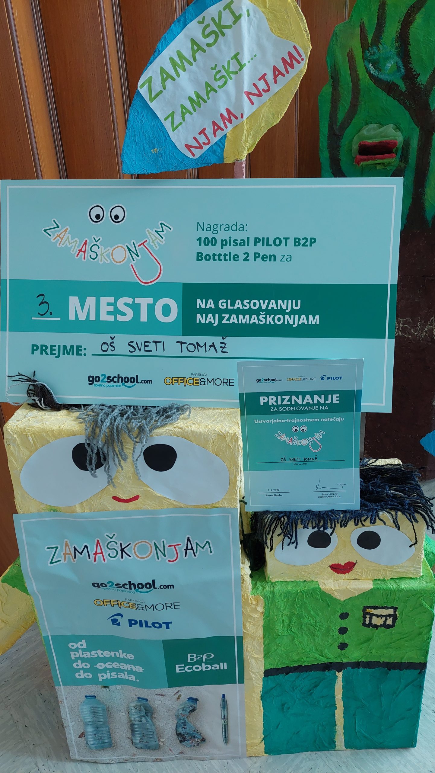Ta teden smo dobili tudi nagrado za našega Zamaškonjama, saj smo dosegli tretje mesto. Hvala vsem, ki ste nam pri tem pomagali. Tudi te nagrade smo bili zelo veseli.