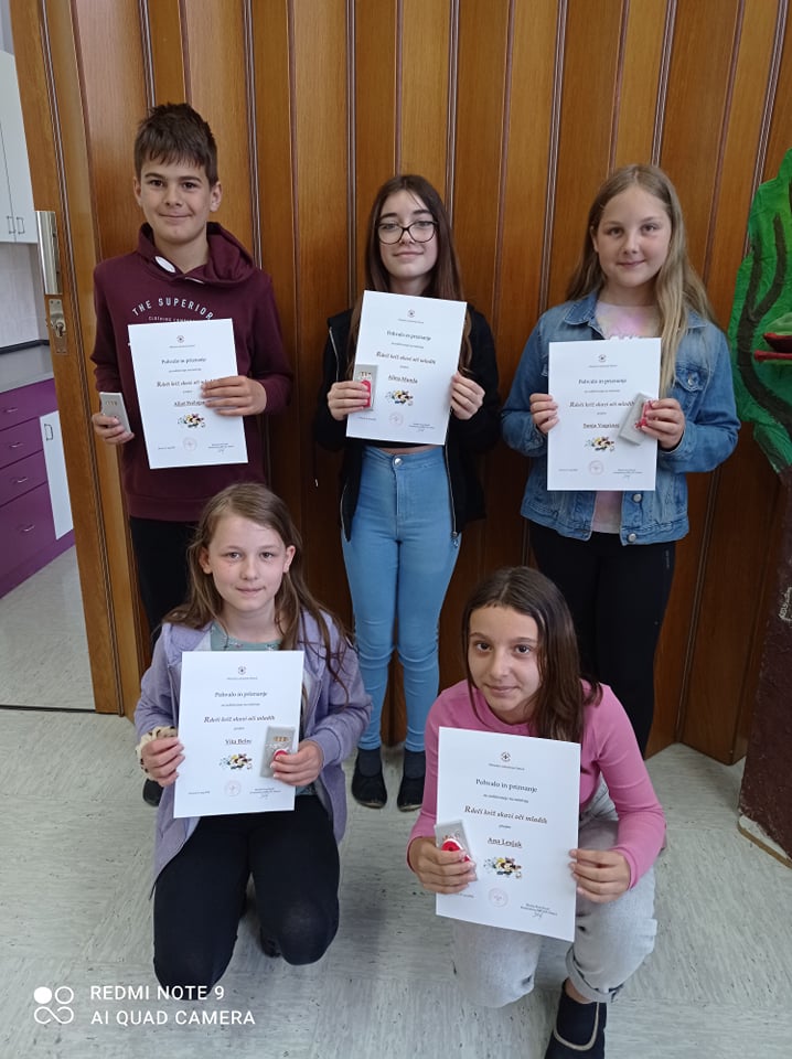 Za sodelovanje smo dobili Pohvalo in priznanje za sodelovanje ter praktične nagrade. Bili smo jih veseli.