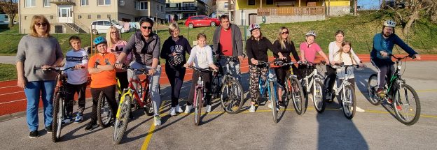 Za projekt Varno na kolesu smo opravili 3. nalogo, s starši smo tekmovali v spretnostni vožnji s kolesi.