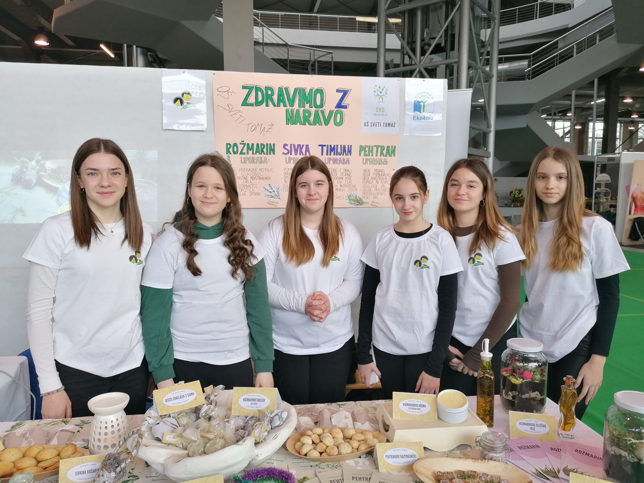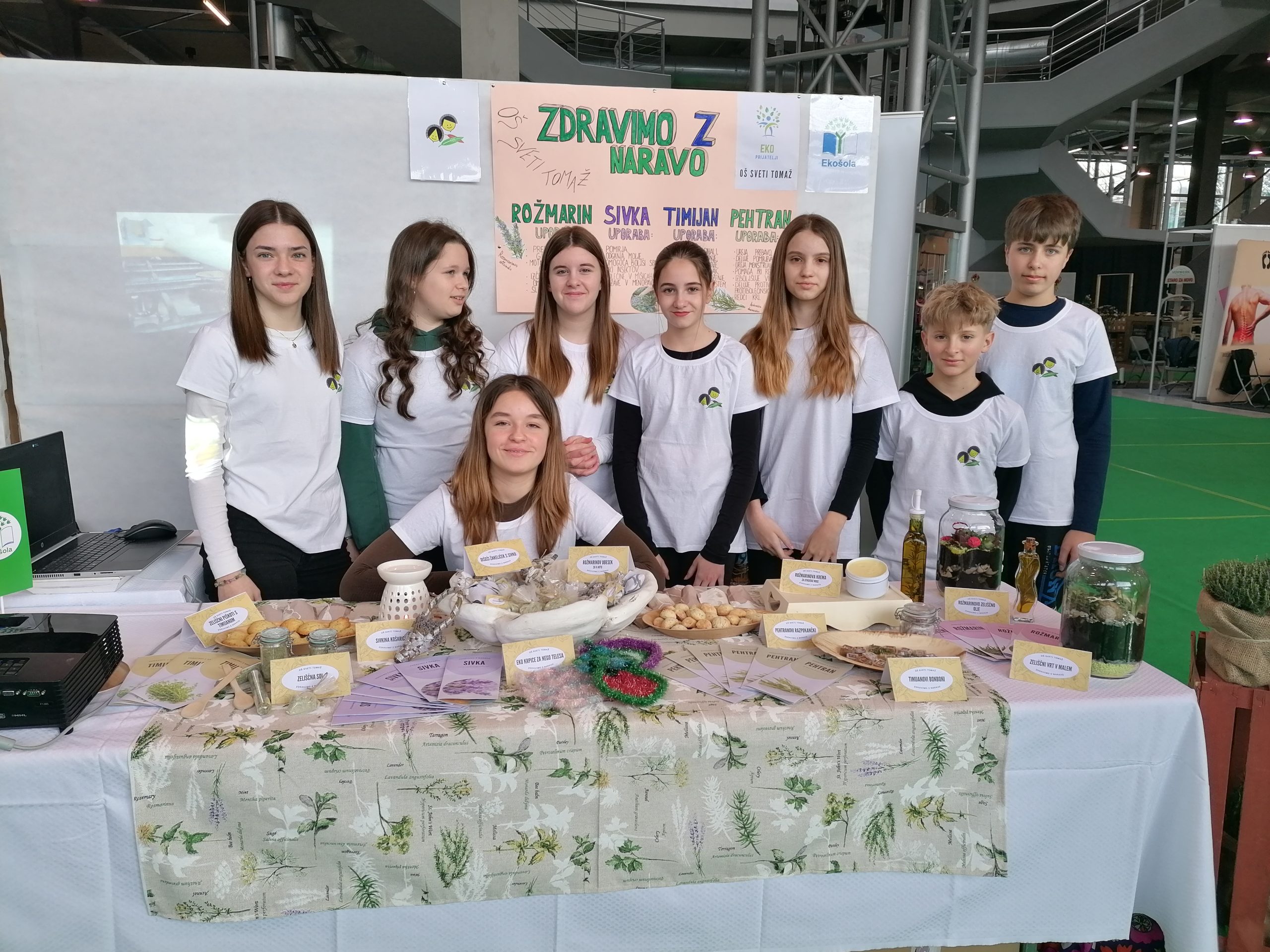 Naša stojnica z naslovom »Zdravimo z naravo« je bila bogato obložena s številnimi praktičnimi izdelki. Podrobneje smo spoznavali zdravilne rastline in njihovo uporabo na različnih področjih. Vse izdelke so učenci več kot odlično predstavili tudi obiskovalcem.