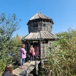 - V Vodomčevem gaju. Bili so zanimivi ribniki, opazovalnice, splav, mreže v katere se ujamejo ptice, da jih lahko obročkajo. Na tablah smo lahko prebrali veliko zanimivosti. V muzeju smo si ogledali stara motorna kolesa, traktorje in avtomobile. (R. H.)