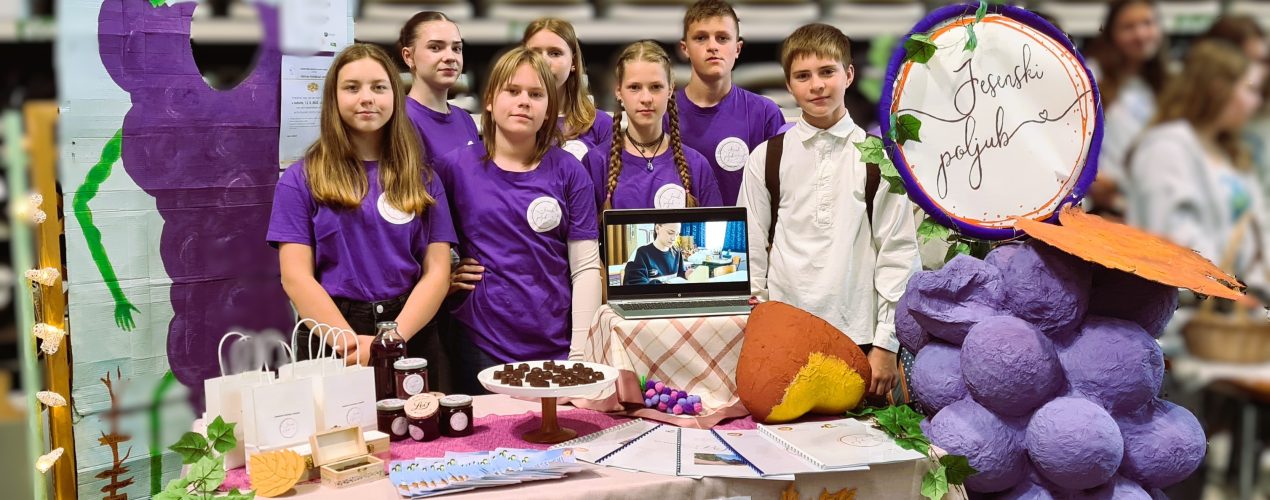 Naša šola se je predstavila s produktom “Jesenski poljub”. Ogledali smo si predstavitve ostalih šol in poskusili številne izvirne kulinarične spominke: maronovo marmelado, kakijev sladoled, palačinke s teranovo marmelado, sladice v lončkih, bujto repo, piškote s suhim sadjem, semeni in fižolom, suhe goveje grižljajčke, sok iz črnine, ladjice z listnatim testom s salom, kokice iz svinjske kože, sladico s suhimi mravljami, ajdove dobrote, pokovko z orehi in karamelo in črni kruh ter črne kekse.