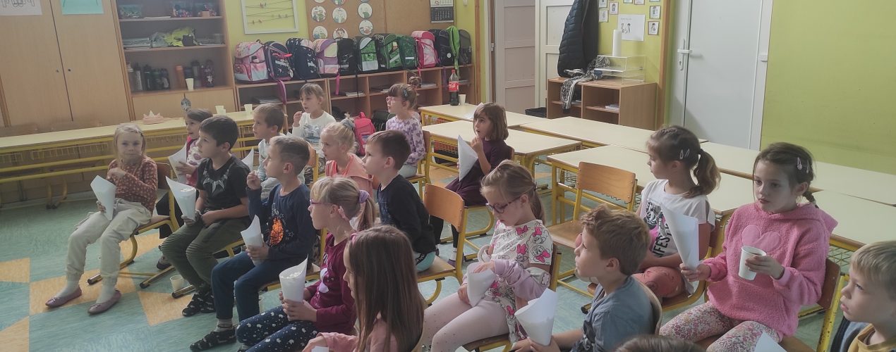 Z ogledom filma (kjer se je 1. razred počutil kot v pravem kinu), smo zaključili teden otroka. Ob gledanju filma smo jedli kokice in pili kokakolo. Za vstop v kino smo imeli tudi vstopnice. Vse skupaj smo povezali s poukom. Za nas, učitelje in strokovne delavce, pa pozornost otrokom nikakor ni končana s tednom otroka. Naši otroci so za nas vedno na prvem mestu.