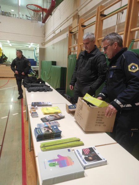 Policist Aleš pa je otrokom podaril različni propagandni material. Otroci in starši lahko preberejo nasvete policije za varno življenje občanov.