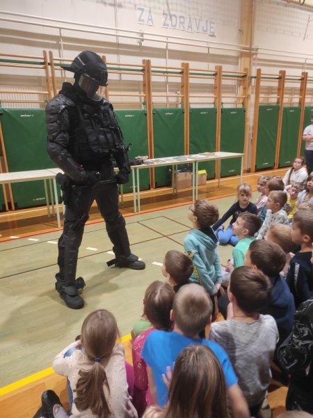 Obiskali so nas policisti PP Ormož. Predstavili so delo policista v posebni enoti. Policist je učencem pokazal vso opremo, ki jo potrebuje pri svojem delu.