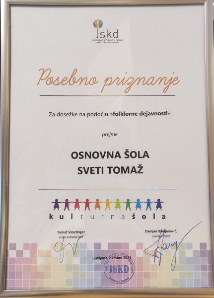 OŠ Sveti Tomaž je obnovila naziv Kulturna šola.