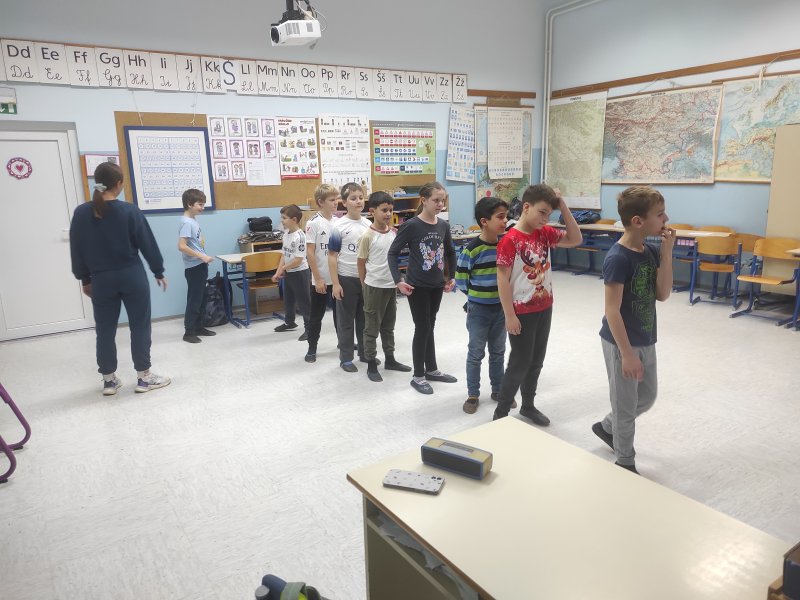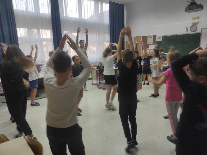 Tudi mi smo danes zaplesali ob različnih plesnih ritmih učiteljev plesne šole Nina. Z učenci od 1. do 5. razreda so zaplesali  plesnih učitelji Nina, Tara,  Nastja, Mara in Domen.