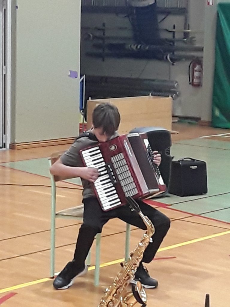 Začeli smo s klavirjem in nadaljevali s harmoniko, ki jo v naši okolici prav vsi poznamo – če ne drugače, pa vsaj s kakšne veselice. Naučili smo se, da harmonika ni le »frajtonarica« za tiste, ki radi sedejo na prvo klop pri gasilskem domu, ampak je pravi večer za ušesa, če jo primeš »po notah«. Nekateri učenci so že razmišljali, da bi z igranjem harmonike zamenjali domače sesanje prahu – saj je oboje na meh.