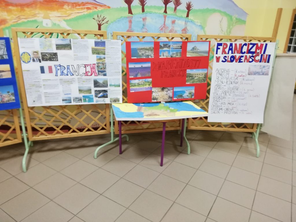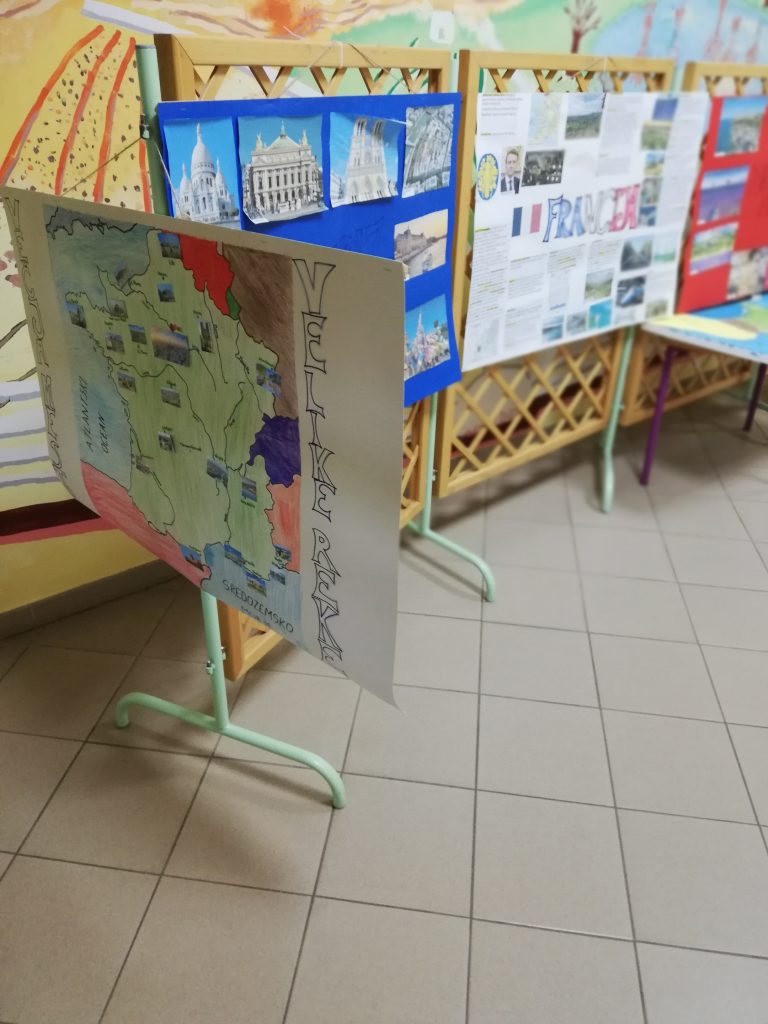 V četrtek, 8. maja 2025, bi morale v Ormožu pred grajsko pristavo potekati dejavnosti ob Dnevu Evrope, a je bila prireditev zaradi napovedi slabega in deževnega vremena odpovedana. Osrednja nit prireditve je bila spoznavanje držav EU. Z našimi učenci smo izbrali Francijo. Ker prireditve v Ormožu ni bilo, smo se odločili, da delček pripravljenega gradiva postavimo na ogled v avli naše šole. Pripravili smo osebno izkaznico države, predstavili glavno mesto, znamenitosti države, izdelali reliefni zemljevid Francije, zemljevid večjih rek in večjih mest ter sosednjih držav. Iskali smo francizme v slovenščini. Na karton iz lepenke smo narisali Mono Liso in Eifflov stolp. Predstavili smo nekaj znanih osebnosti. Učenci so se skupaj z razrednikom Markom res potrudili. Učiteljica Aleksandra nam je pomagala pri pripravi glasbene točke. Eva Tanaja in Teja bi zapeli pesem Mon Amour, ki je bila lanska predstavnica Francije za pesem Evrovizije.