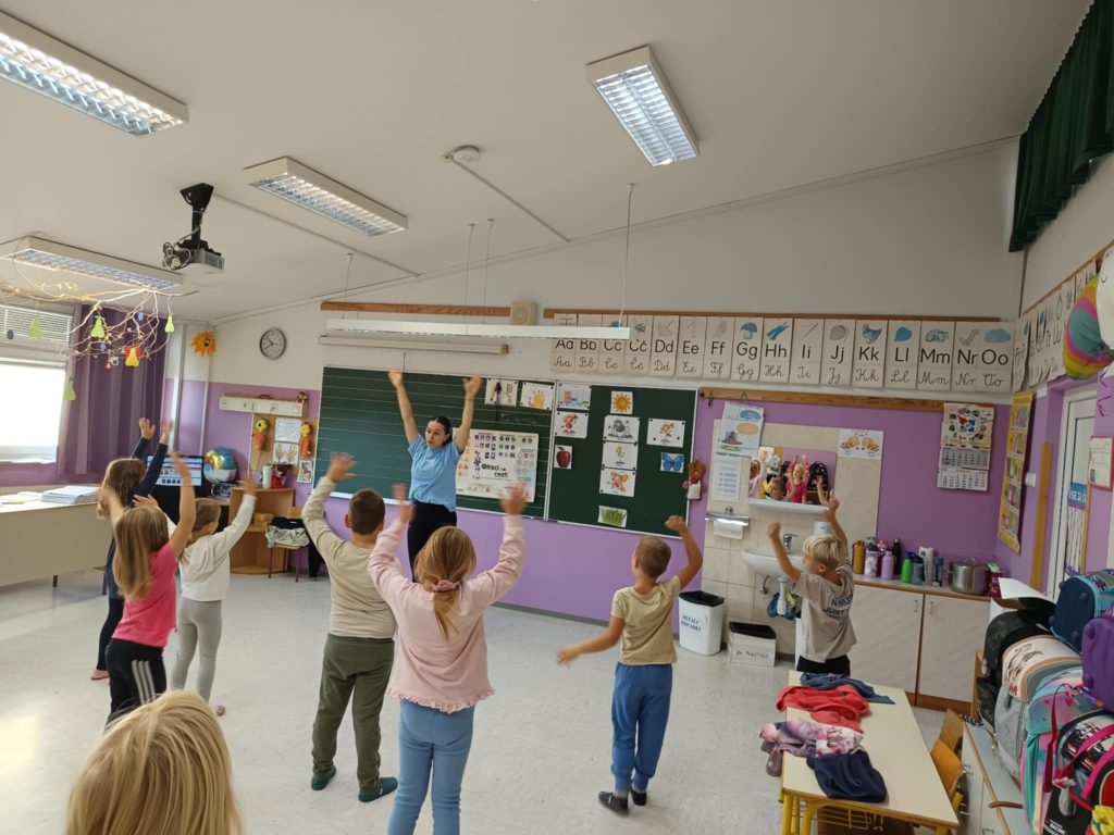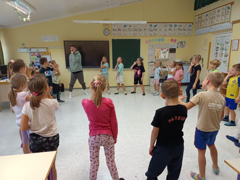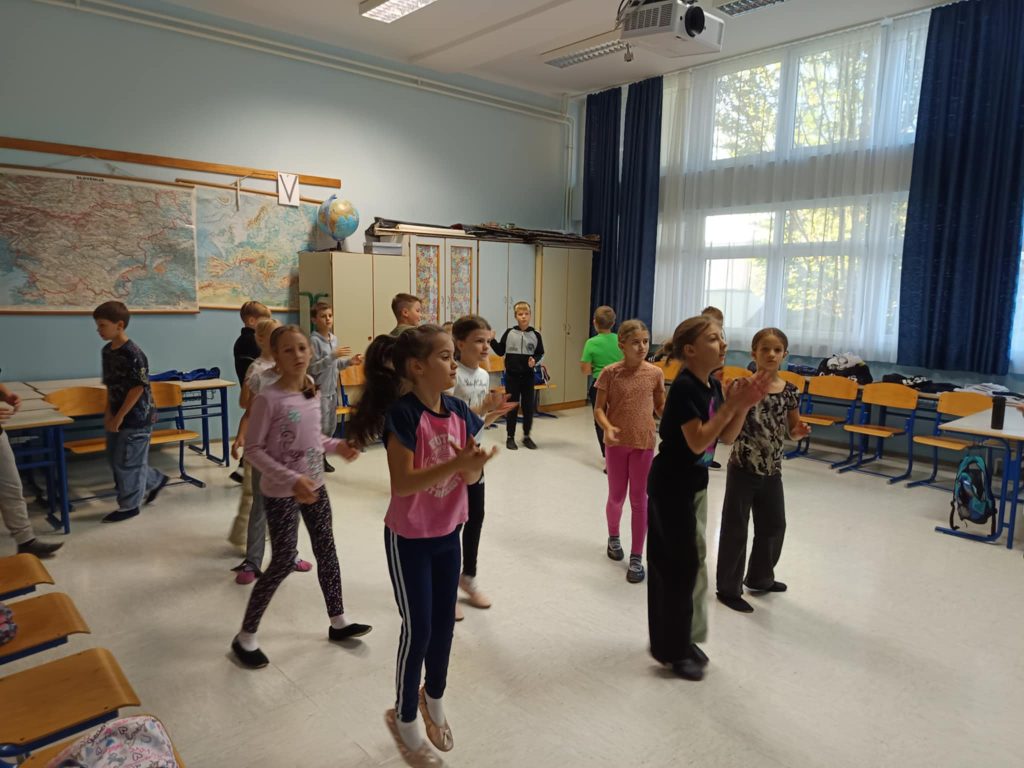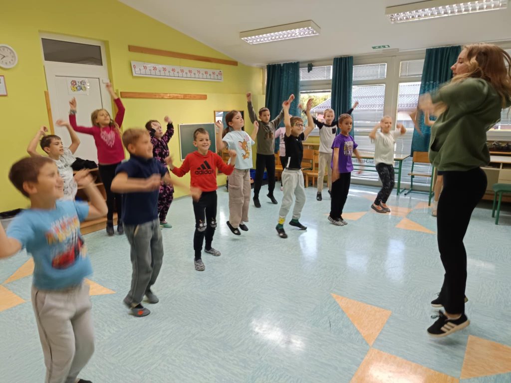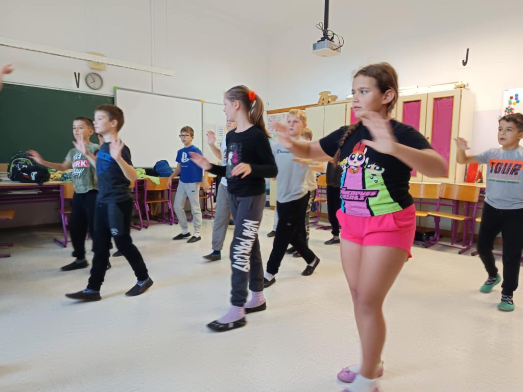 Danes smo na šoli imeli plesni dan za učence od 1. do 5. razreda. Obiskala nas je plesna šola Nina, ki je poskrbela za zabavno in razgibano dopoldne. Učenci so se naučili novih plesnih korakov, prisluhnili glasbi in uživali v gibanju, saj je gibanje v ritmu glasbe vedno prijetna in zabavna izkušnja. Vzdušje je bilo veselo, učenci pa navdušeni nad plesom.