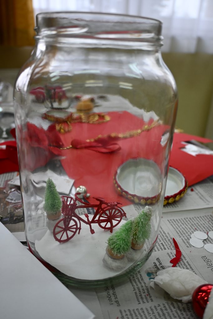 Ta dan mi je bil zelo všeč. Izdelali smo tri prelepe izdelke: namizni okrasek, kozarec s svečko in model škrata.