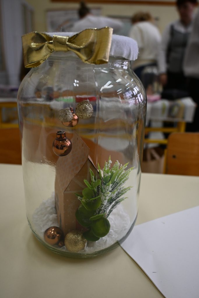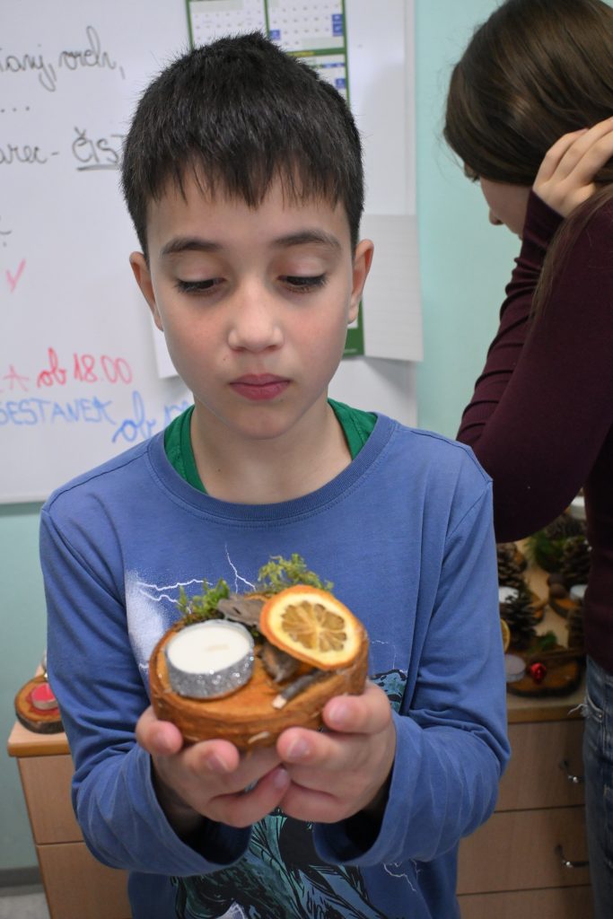 Devetošolci smo izdelovali zvezde iz origami papirja, okraske za smrečico, pripravili smo čokoladni napitek s penicami in čudovito stekleno dekoracijo za na mizo. Bili smo aktivnih cel dan, pri tem pa smo morali biti zbrani in natančni. Veseli smo, da so nam vsi načrti za tržnico uspeli. Upamo, da se vidimo v čim večjem številu!