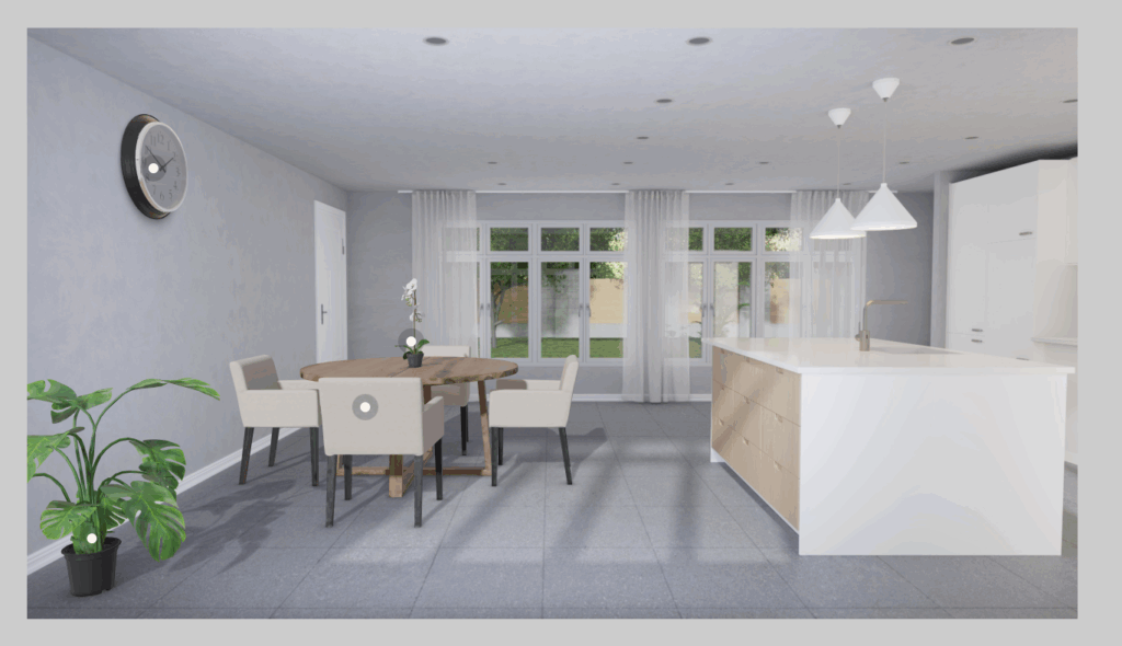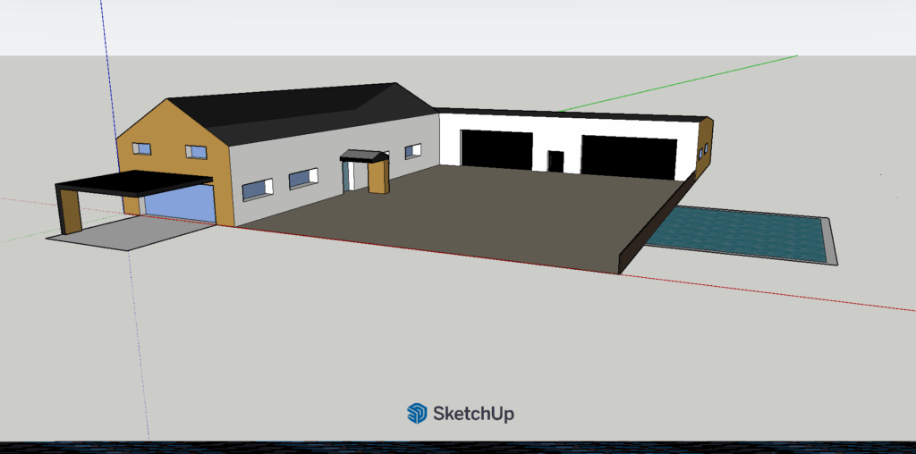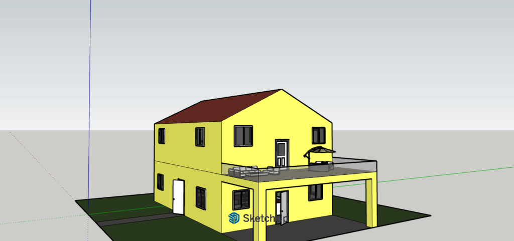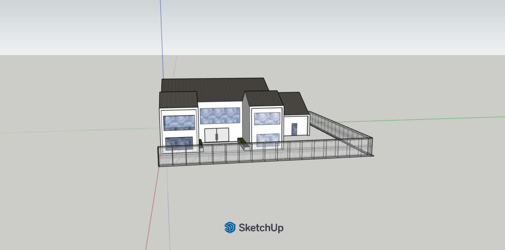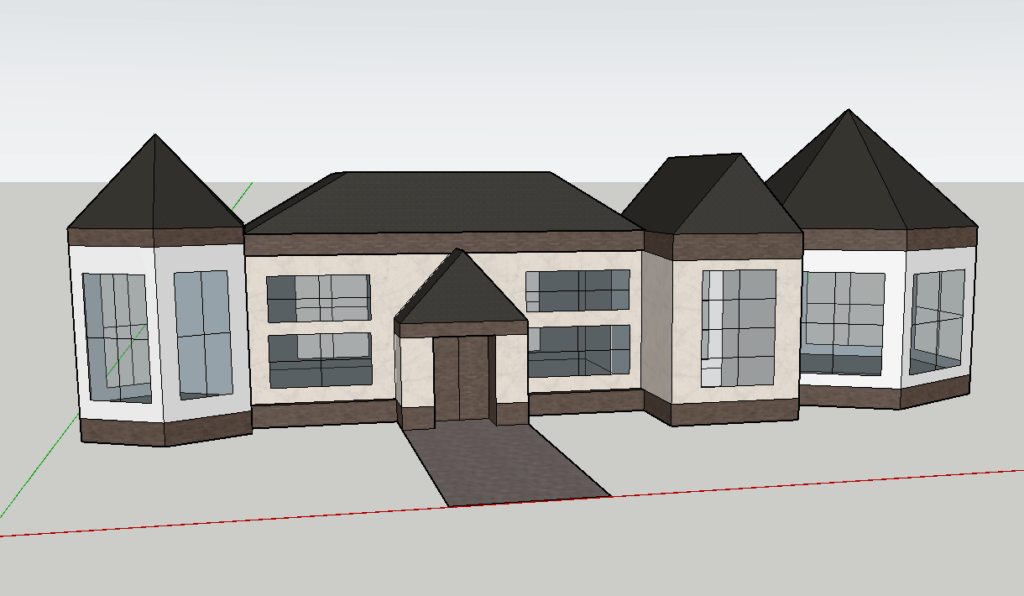 Načrtovanje hiše smo začeli z risanjem hiše s programom Google Sketchup. Bilo je zelo zanimivo in tudi smešno. Ko smo končali z zunanjostjo hiše, smo začeli z notranjimi prostori. To smo delali na spletni strani Ikea. Vse zaključene slike smo naložili vspletno učilnico. Dan smo končali ob 11.55.