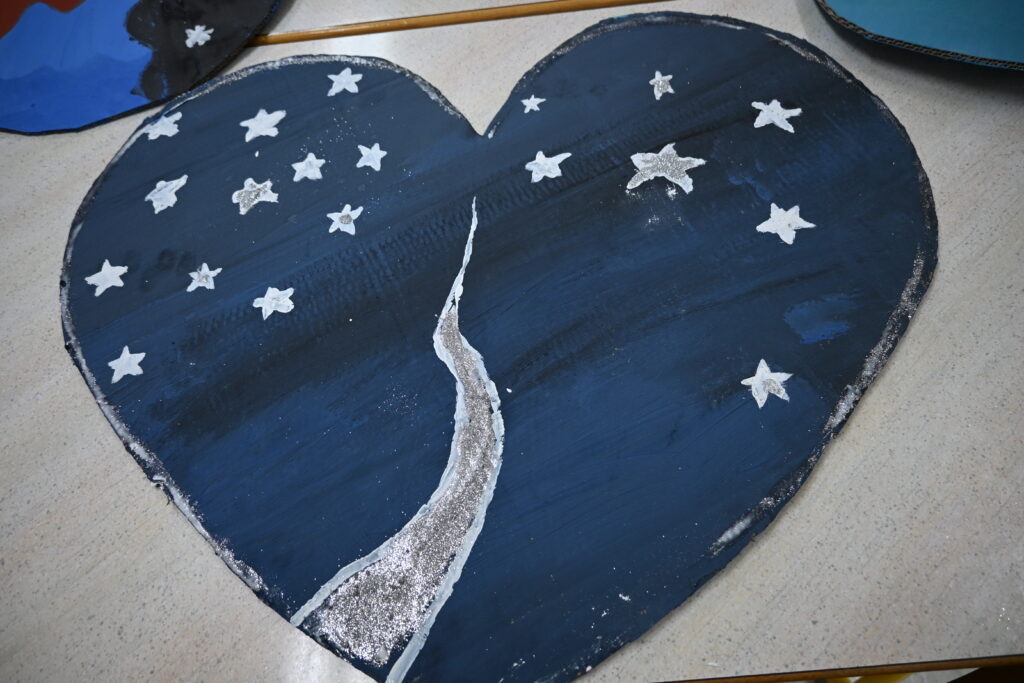 Na naši šoli je letos pust dobil prav posebno, srčno obarvano podobo! Učenci od 6. do 9. razreda smo se pri likovnem ustvarjanju lotili izdelave pustnih mask na temo valentinovega. Učilnice so se za nekaj dni spremenile v prave ustvarjalne delavnice, polne barv, bleščic, papirnatih src in dobre volje. Vsak učenec je masko oblikoval po svoji domišljiji – nastajale so maske zaljubljenih junakov, skrivnostnih src, nasmejanih obrazov in domiselnih simbolov prijateljstva. Uporabili smo različne materiale, od kartona in barv do perja, trakov in gumbov. Ob delu ni manjkalo smeha, sodelovanja in izmenjave idej, kar je ustvarjanje naredilo še bolj zabavno.