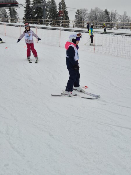 V ponedeljek, 2. 2. 2026, smo se z učenci 4.a udeležili akcije Šolar na smuči. Gre za vseslovenski projekt smučarskega ozaveščanja šolskih otrok, ki učencem osnovnih šol omogoča brezplačen sistematično voden smučarski dan na smučišču. Akciji smo se skupaj z OŠ Ivanjkovci pridružili na Mariborskem Pohorju. Ob prihodu smo od učiteljev tamkajšnje smučarske šole prejeli majice in uvodna navodila. Z gondolo smo se nato odpeljali do vrha, kjer smo se ogreli in pričeli s smučanjem. Začetniki so po uvodnem prilagajanju hitro usvojili prve smučarske korake, zato so se kmalu podali na smučišče. Naučili so se varno zaustaviti, večina od njih pa tudi preprostega vijuganja. Učenci smučarji so nadgradili svoje znanje in se nekateri prvič vozili s sedežnico.