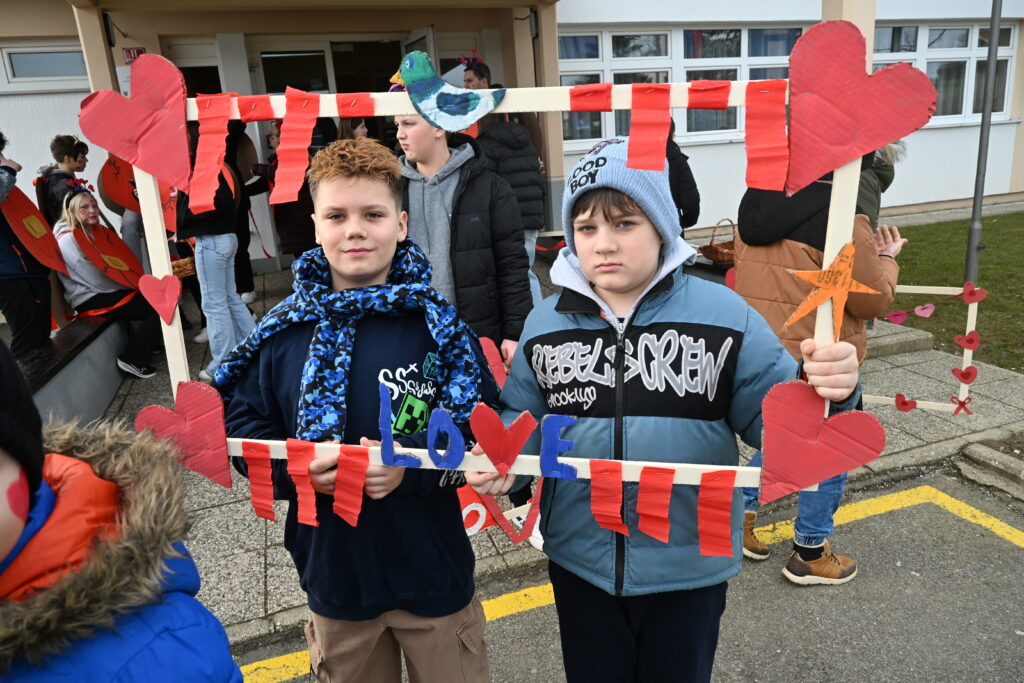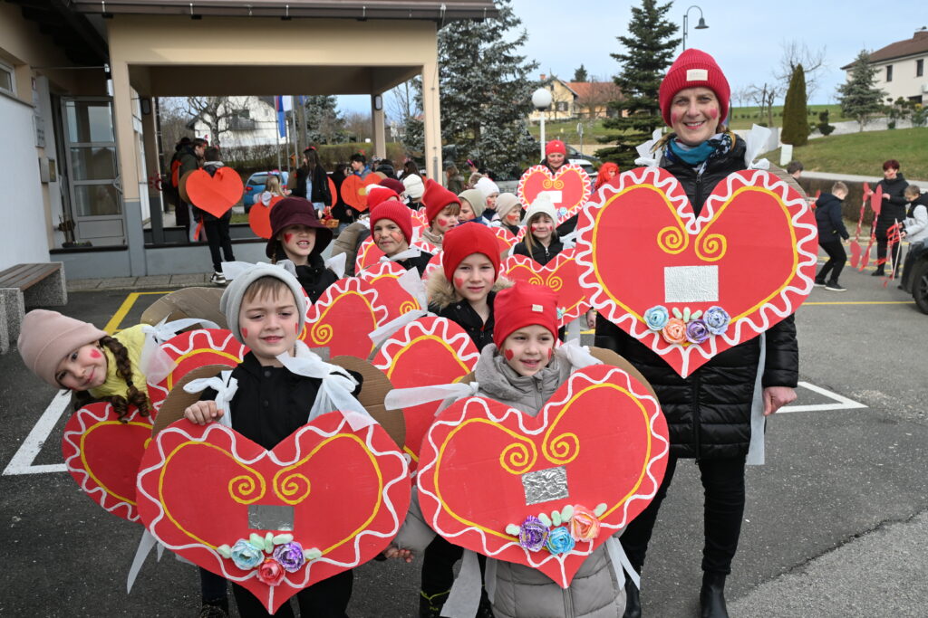 Pustni karneval v Svetem Tomažu je letos zažarel v prav posebnem duhu – v duhu ljubezni, topline in ustvarjalnosti. Učenci Osnovne šole Sveti Tomaž so se s ponosom in veseljem predstavili na karnevalski povorki, kjer je bila osrednja tema valentinovo. S skrbno izdelanimi maskami srčkov so prikazali bogastvo idej, čustev in otroške domišljije. Po ulicah so tako zaživeli lectarjeva srca, razočarane ljubezni, spominske kartice in ljubezniva sporočila, ki so s svojo barvitostjo in sporočilnostjo ogrevala srca obiskovalcev. Vsaka maska je nosila posebno zgodbo in sporočilo o prijateljstvu, prijaznosti in medsebojnem spoštovanju, kar je ustvarilo čudovito, povezano celoto. Poseben čar so dodali tudi otroci modre skupine iz vrtca, ki so skozi prikupno uprizoritev pravljice o kozličkih in volku navdušili z igrivostjo, pogumom in iskrenim nastopom. Njihova predstava je vsem prisotnim pričarala nasmeh in toplino. Karneval je bil prežet z dobro voljo, smehom in srčnostjo. Ponosni smo na naše učence in najmlajše, ki so s svojo ustvarjalnostjo, sodelovanjem in ljubeznijo do skupnosti obogatili dogodek ter dokazali, da skupaj ustvarjamo nepozabne in srčne trenutke.