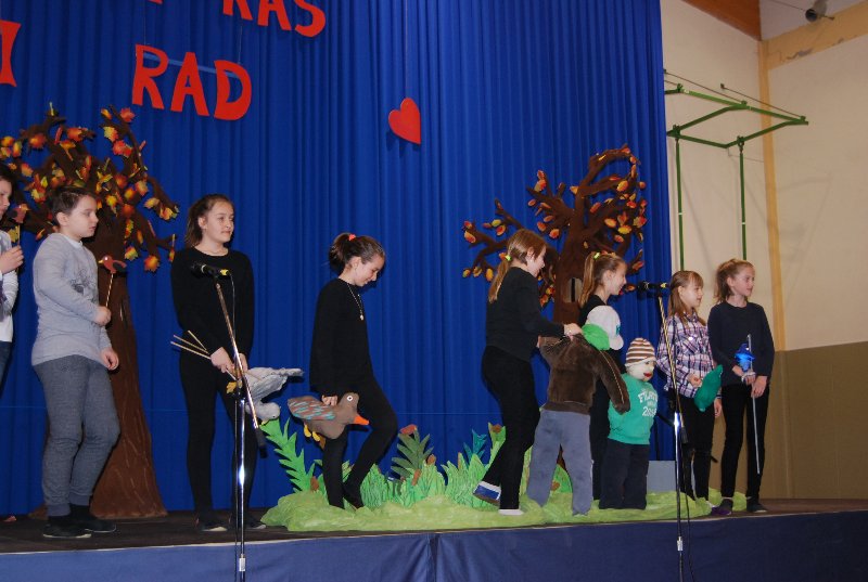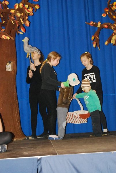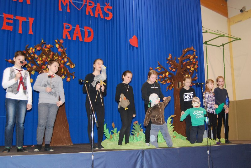 V petek, 17. 3. 2017, so nam učenci lutkovnega krožka pripravili lutkovno predstavo. Izvedli so čudovit nastop. V predstavo je bilo vloženega ogromno truda lutkarjev, kot mentorici učiteljici Zvonka in Maja. Zelo smo bili navdušeni nad sceno.