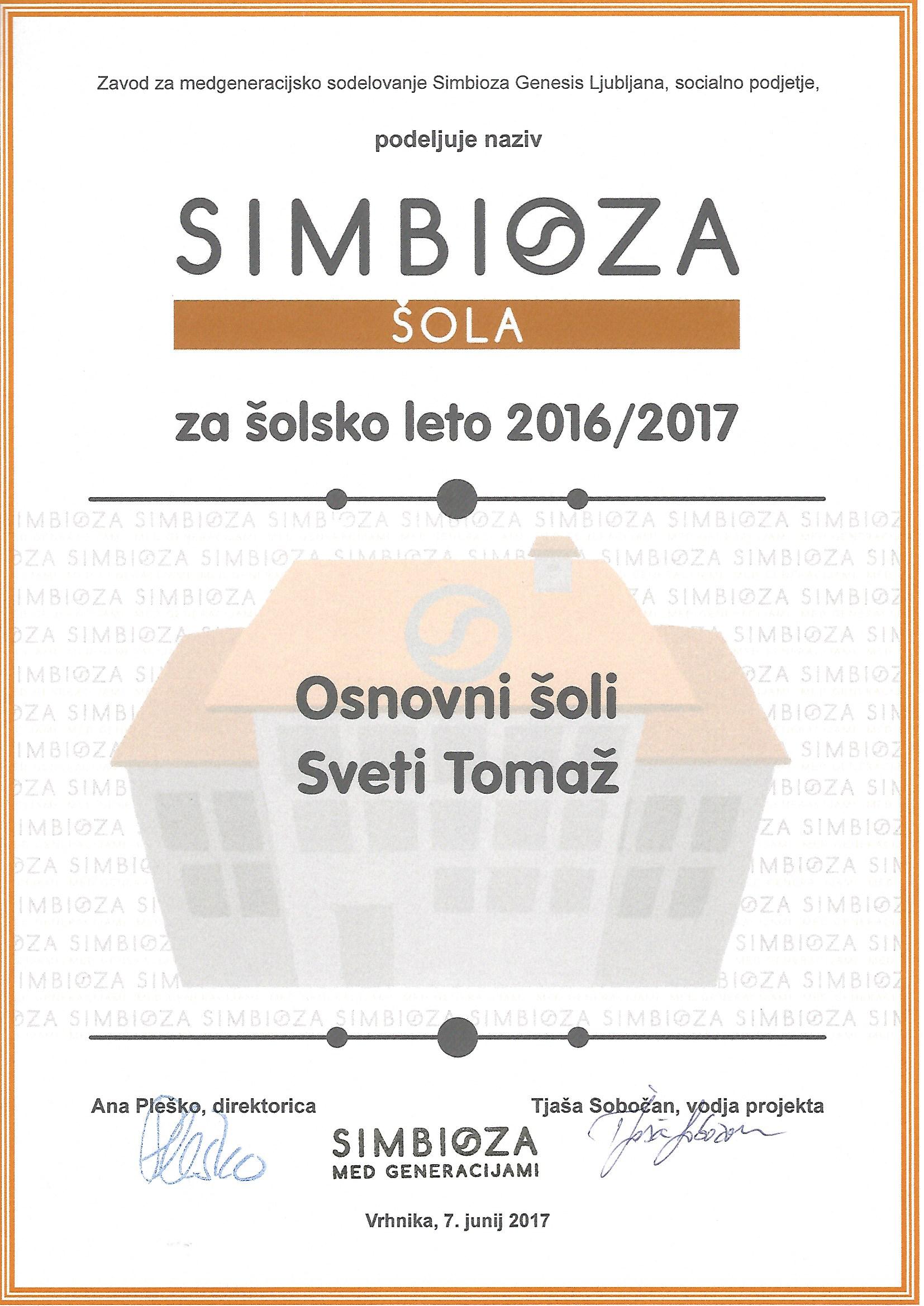 OŠ Sveti Tomaž je Simbioza šola za šolsko leto 2016/17
