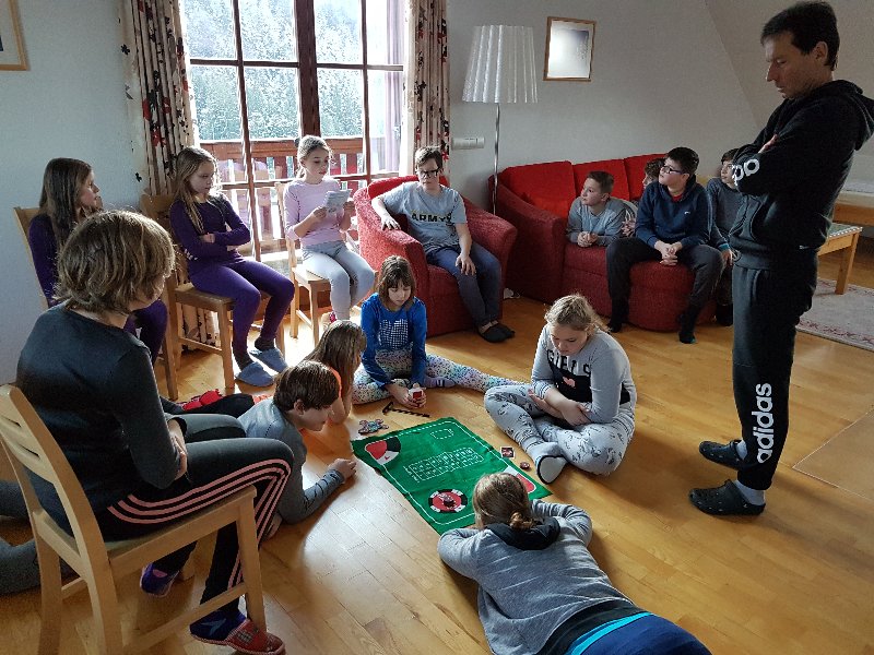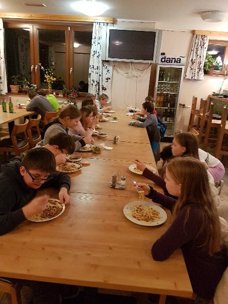 Po večerji so sledile še družabne igre in sproščeno druženje. Dan je bil zelo naporen, jutri pa sledi tudi nočna smuka.