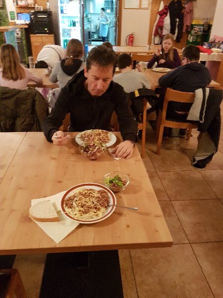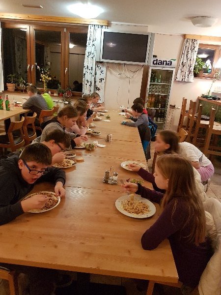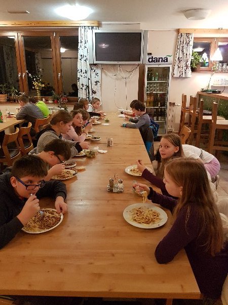 Po zajtrku smo se odpravili na smučišče in utrdili svoje znanje. Takoj po smučanju smo se odpravili na kosilo. Hrana je zares odlična. Sledilo je smučanje od 13. 30 do 15. 15. Po krajšem počitku smo imeli predavanje gospoda policista, ki nam je predstavil varnost na smučišču in FIS pravila. Ob 18. uri je sledilo nočno smučanje, zatem pa še večerja, PIZZA. Vsi smo že malce utrujeni, vendar nadaljujemo!