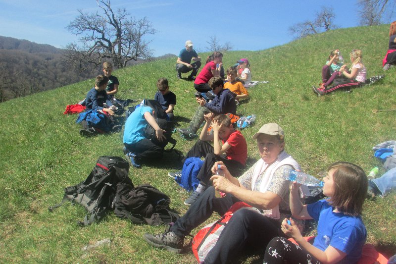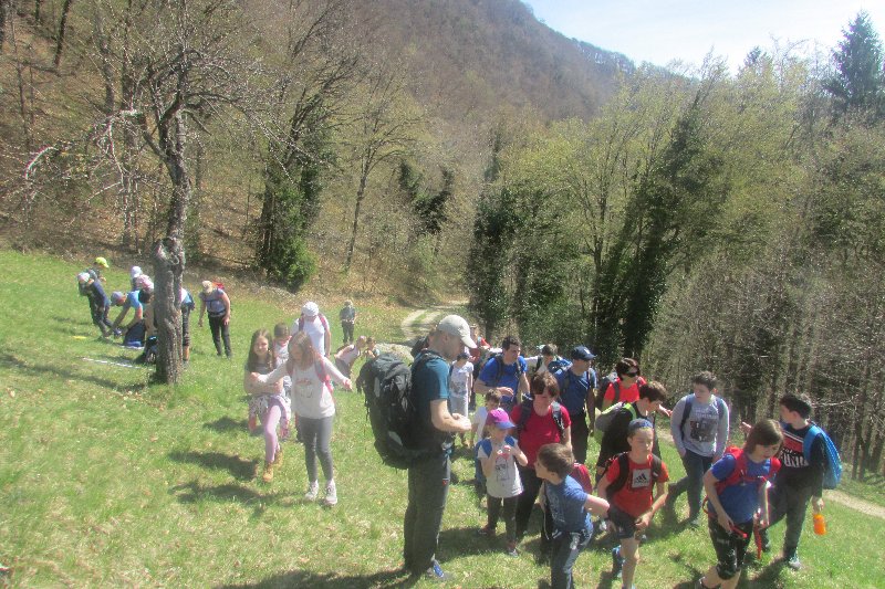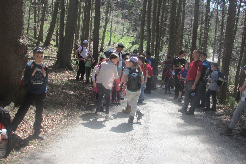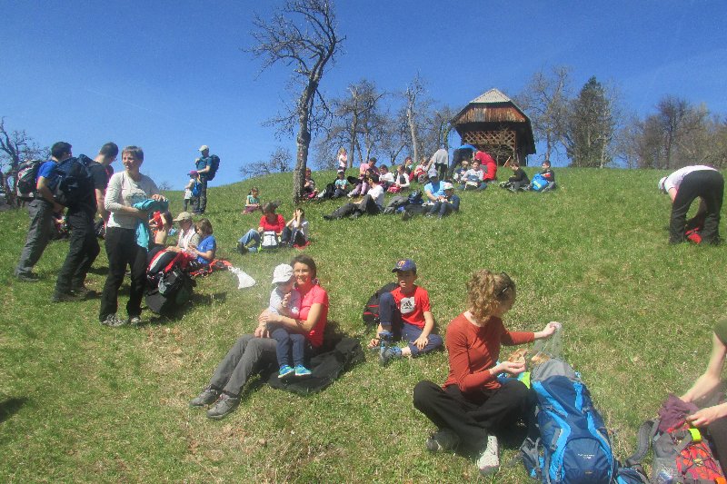 V soboto, 14. 4. 2018, smo se odpravili na spomladanski planinski izlet na Gore. Pridružili smo se učencem iz OŠ Ormož in OŠ Središče ob Dravi. 17 otrok naše šole in vrtca (nekateri v spremstvu staršev) smo se tokrat na izlet odpravili z vlakom. Iz Ormoža smo se odpeljali do Zidanega Mosta, nato pa pot nadaljevali do razložene hribovske vasi z imenom Gore. Višina vrha Gore, ki leži nad planinskim domom, je 762 m. Na vrhu stoji cerkvica Sv. Jurija. Višinska razlika, ki smo jo prehodili, je bila 562 m. Po prihodu na vrh smo se dobro okrepčali. Na igrišču so fantje igrali nogomet, nekateri so počivali v senci in se pripravljali na spust v dolino, drugi so se igrali na igralih. Za pot na vrh smo potrebovali 2 uri in pol, pot v dolino do železniške postaje v Hrastniku pa je bila nekoliko krajša. Prehodili smo skoraj 12 km. Zelo zanimiv je bil zadnji del poti, ko so učenci »vozili vlak«. Dan je bil sončen in lep. Malce utrujene od dolge poti so nas ob sončnem zahodu na ormoški železniški postaji pričakali starši. Veselimo se že naslednjega izleta. Tokrat gremo na Golte. Lahko se nam pridružite!